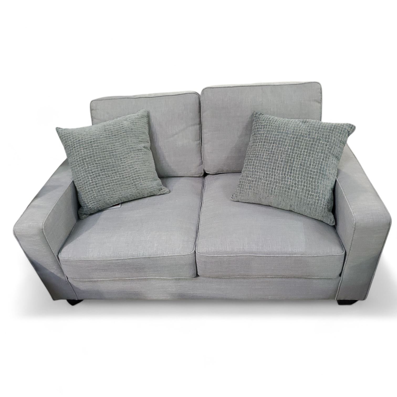 Grey Fabric Loveseat, Approx. H34" x W63" x D36"