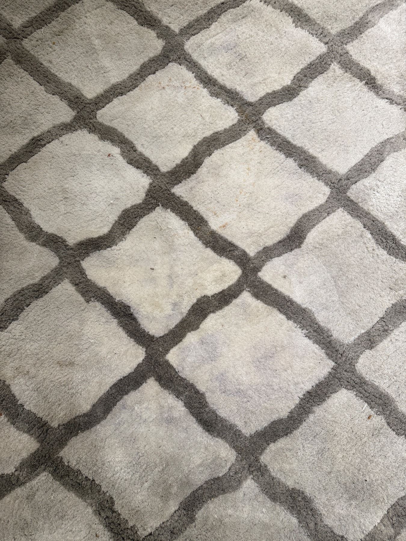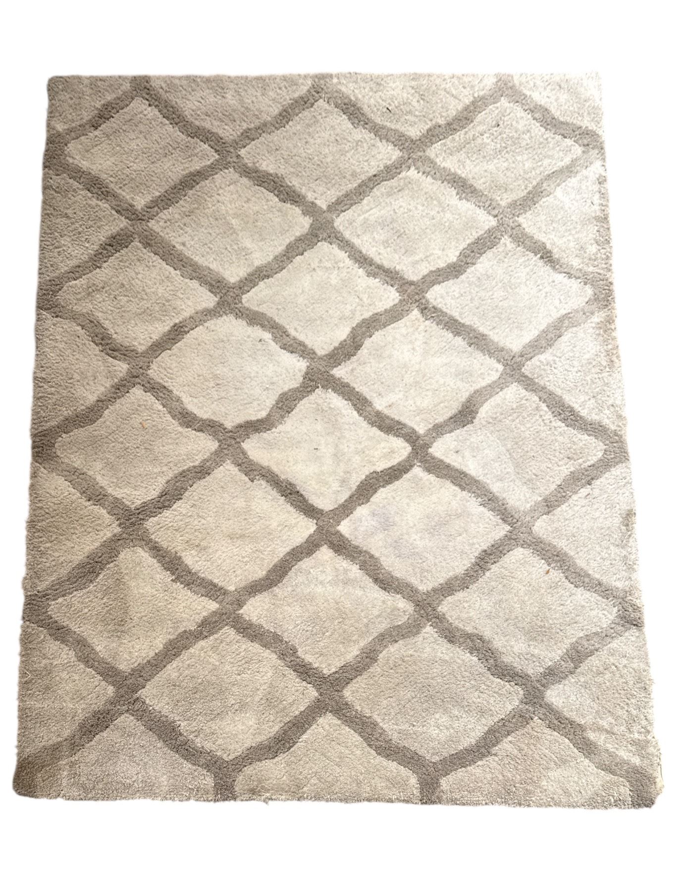 Grey Lattice Plush Shag Modern Area Rug - Approx 64in x 90in