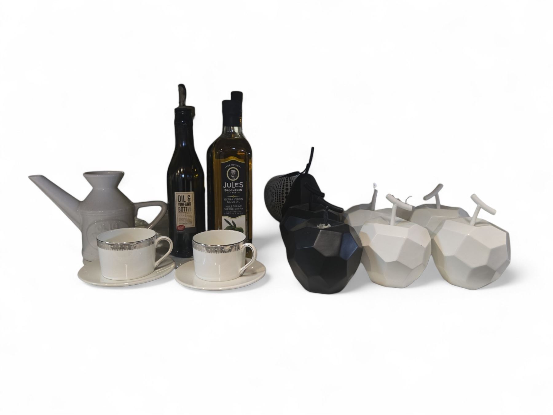 Group - Black & White Apple & Pear Décor, Olive Oil Bottles, Tea Cups, Etc.