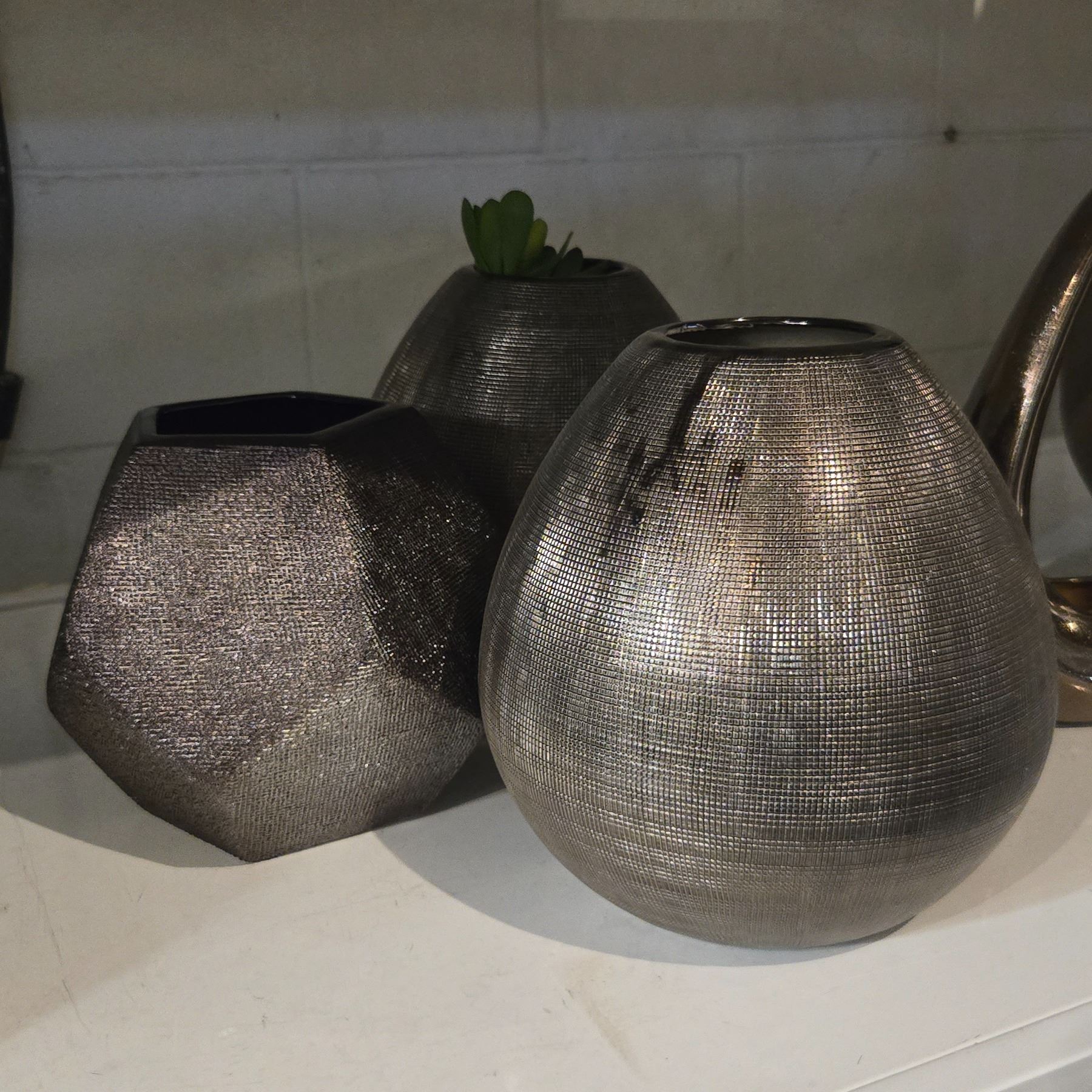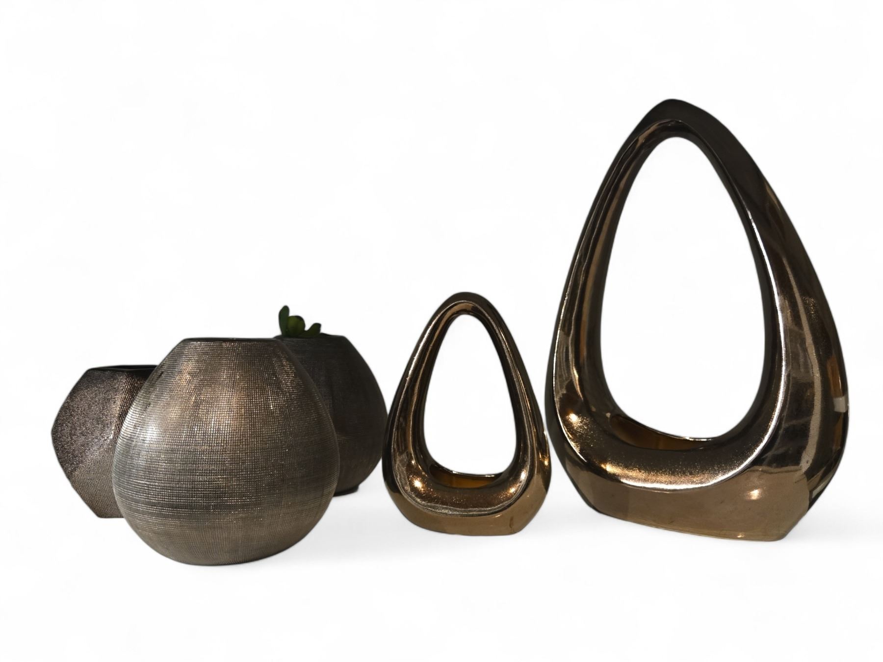 Group - Bronze & Silver Modern Planters / Vases