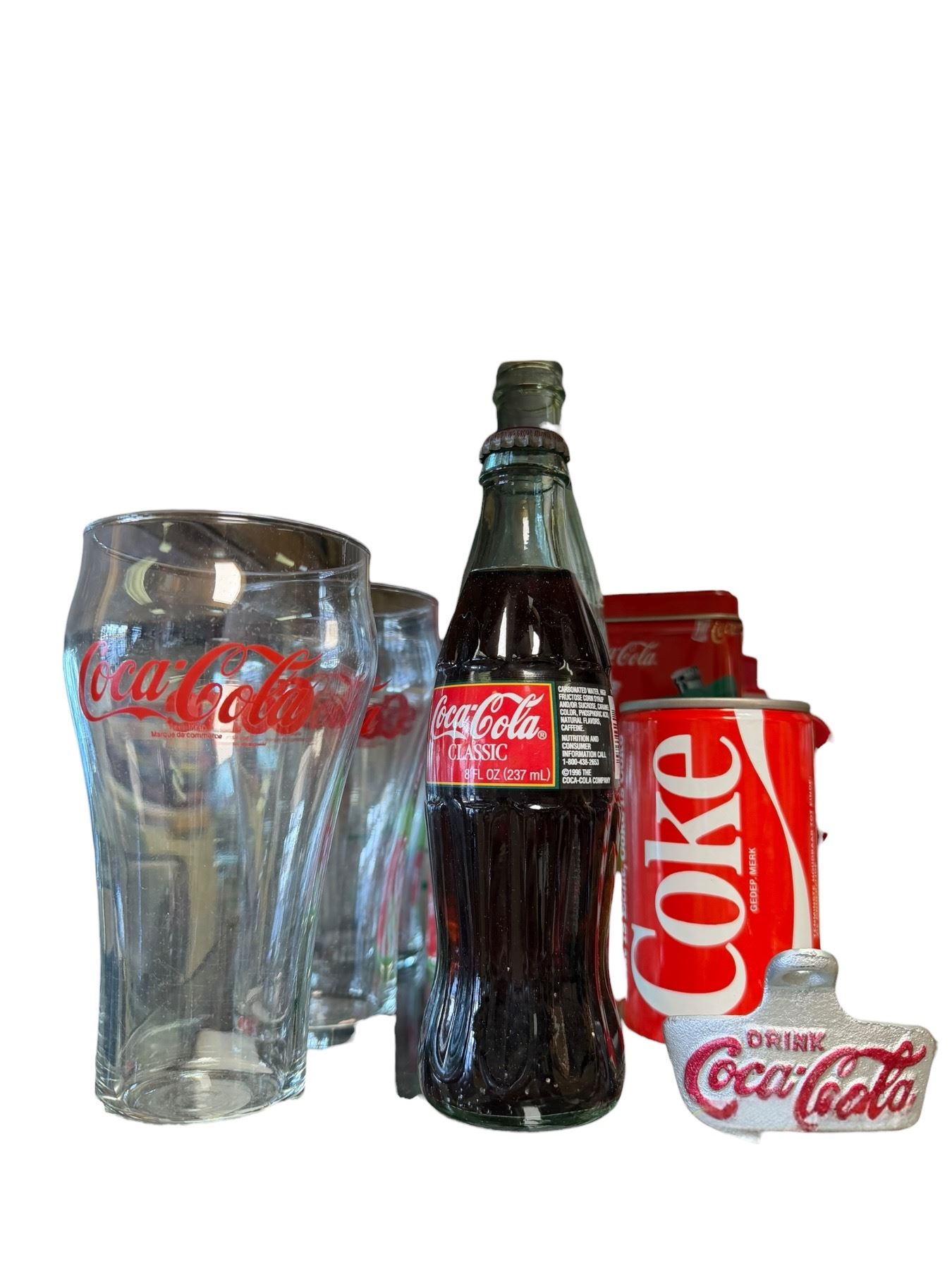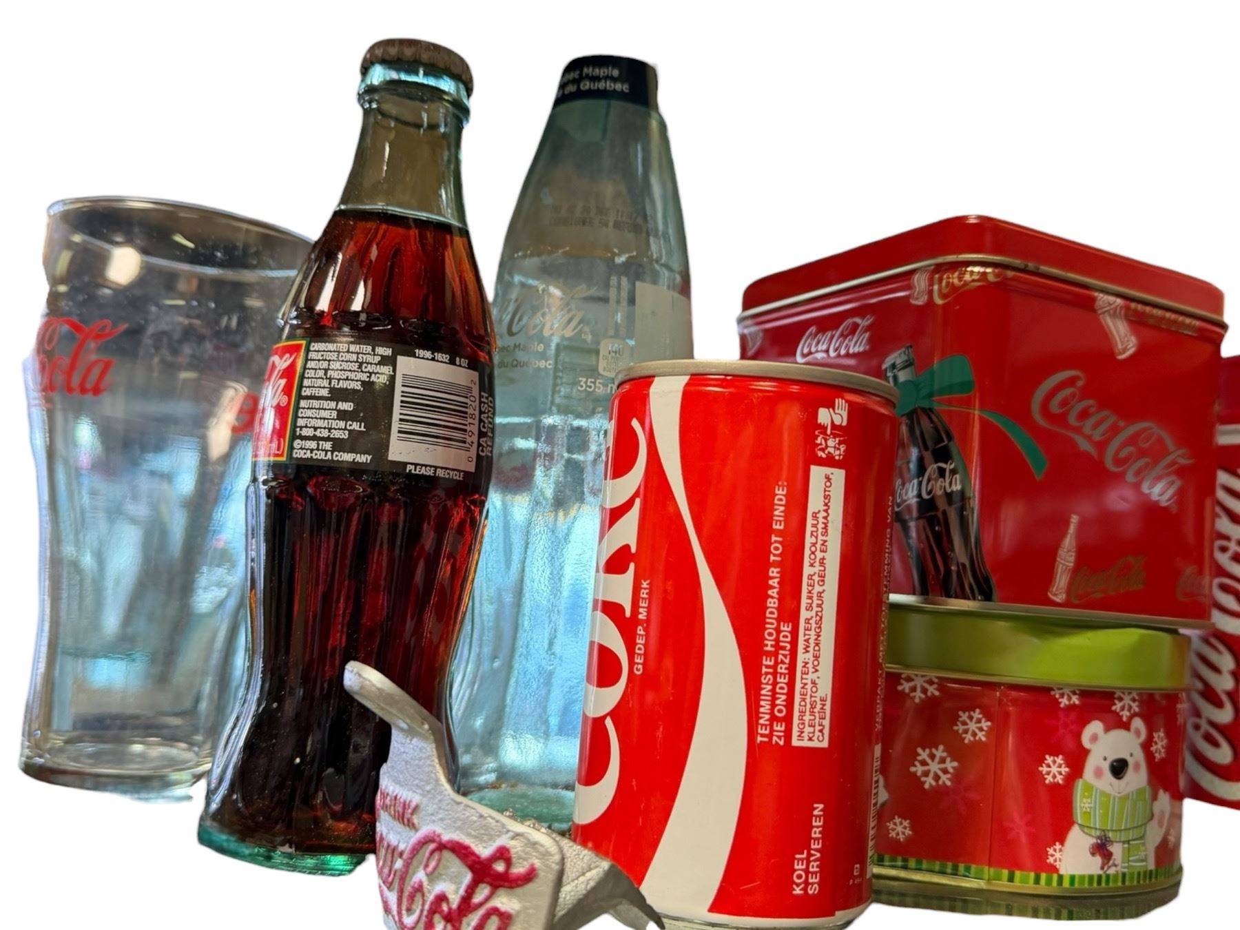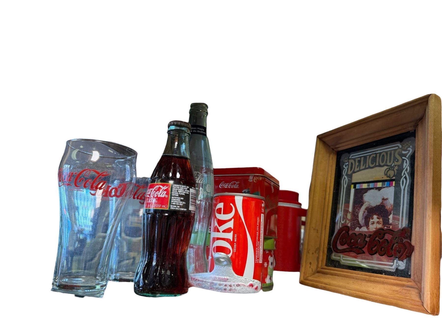 Group - Coca-Cola Glasses, Bottles, Framed Mirror, Tins, Etc.