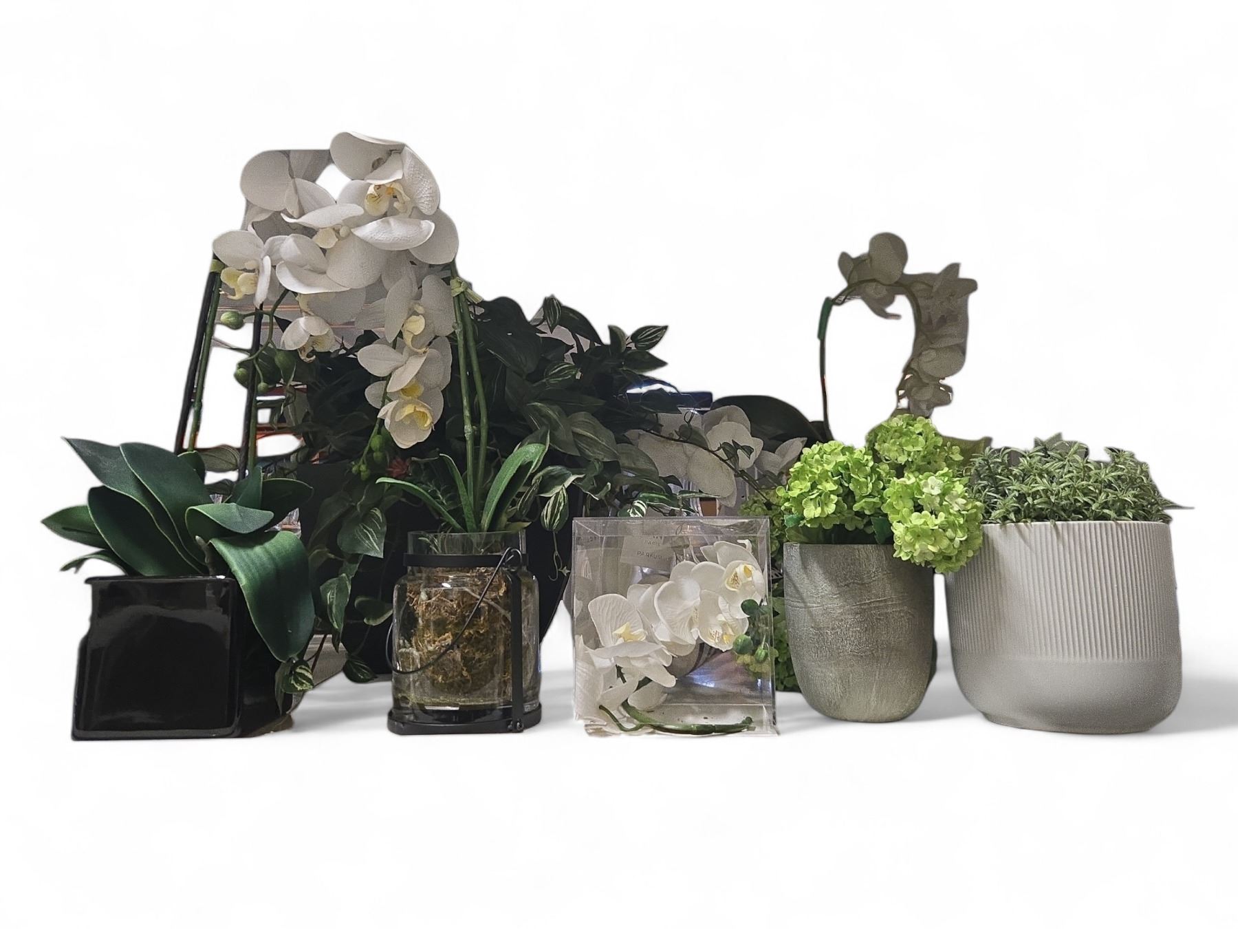 Group - Faux Plants & Flowers in Various Vases