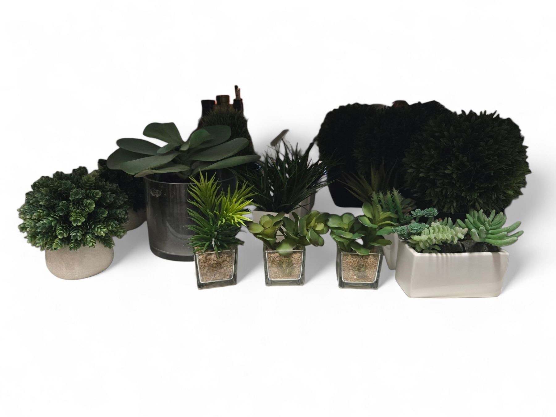 Group - Faux Plants & Flowers in Various Vases