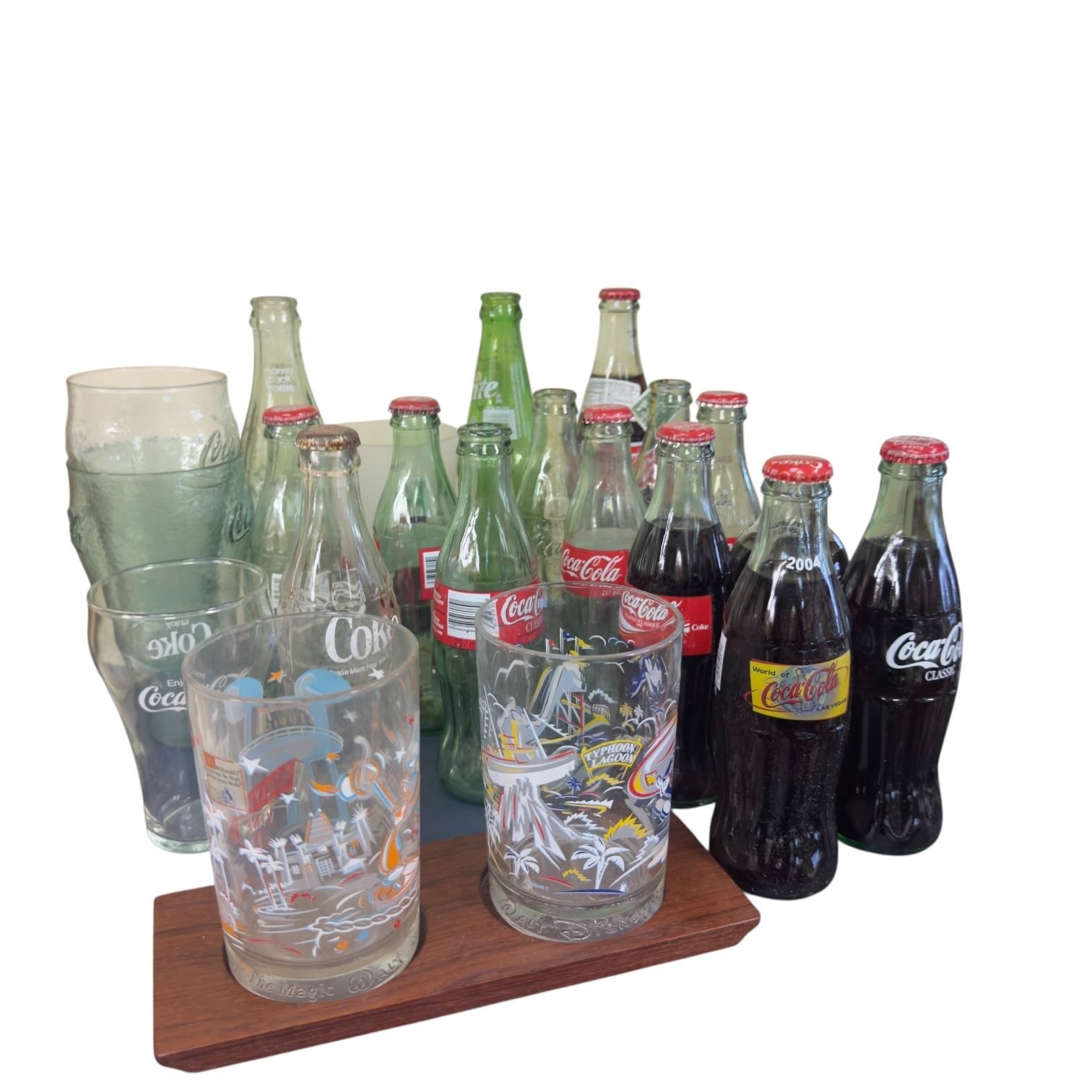 Group Lot - Coca-Cola Glass Bottles, Disney Glasses, Plastic Mugs