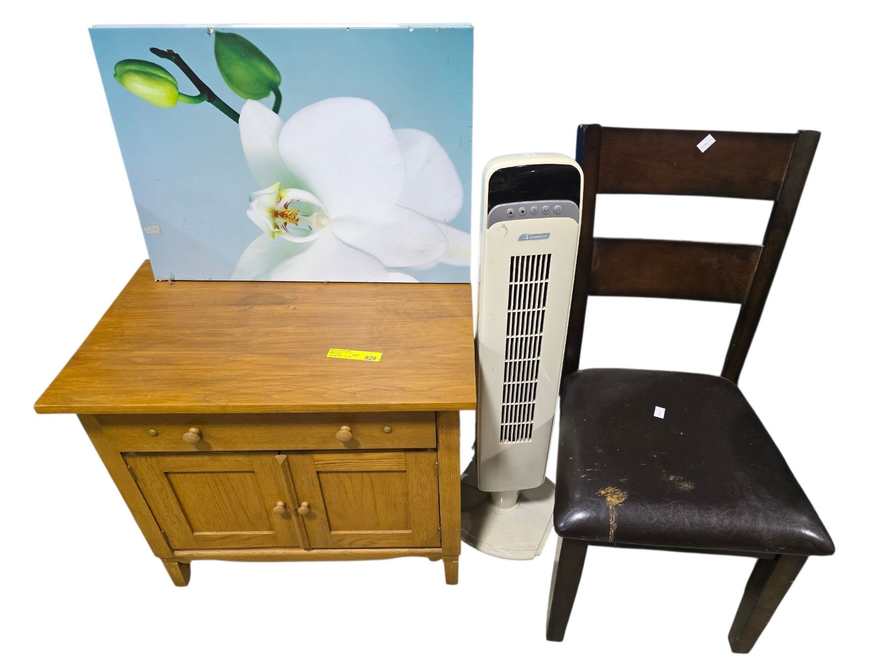 Group Lot includes wooden Small country cabinet / Set of 2 Wood Lys Frames/ Tower Fan/ Microban Foam Mats & More (Must take all)