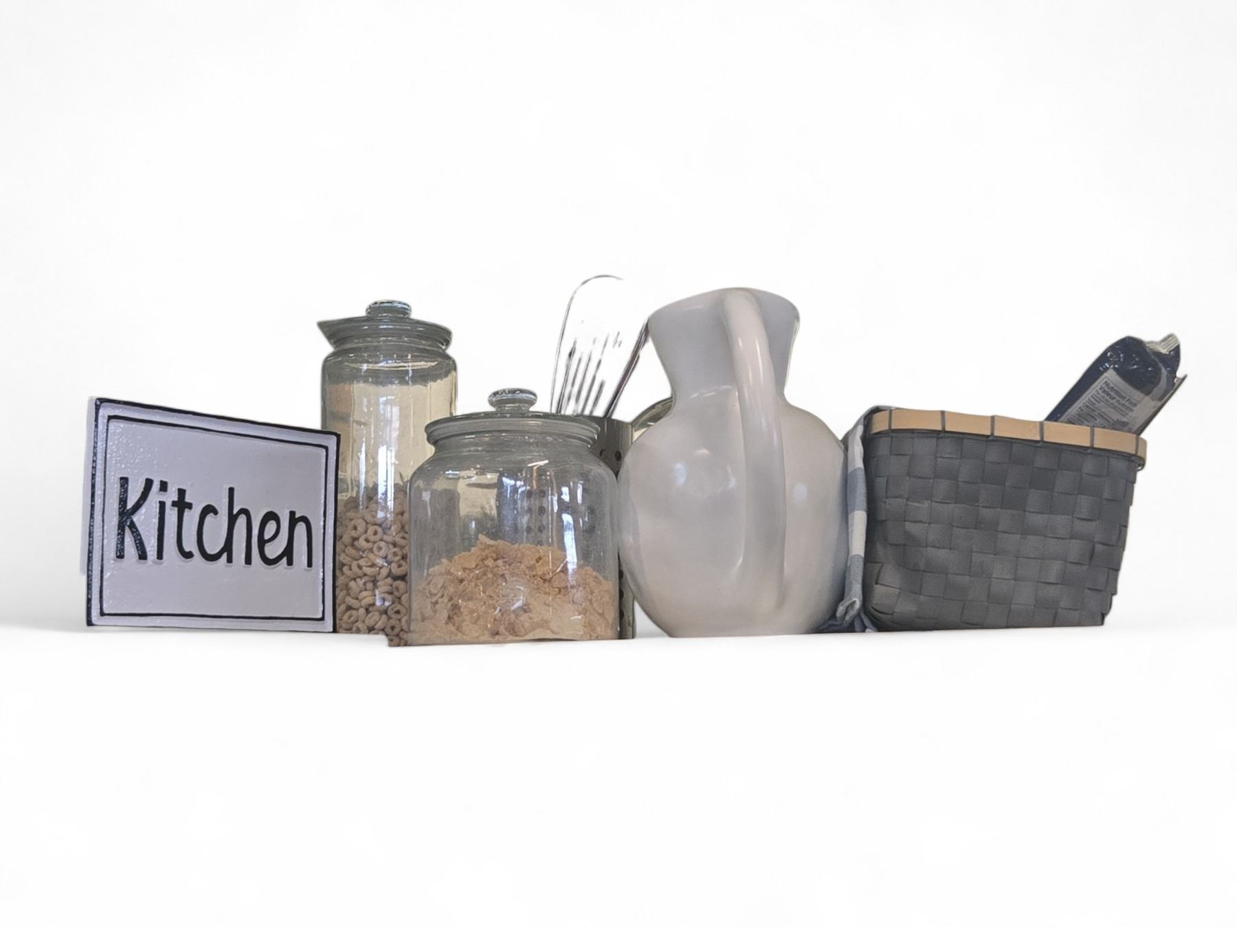 Group - Misc. Kitchen Glass Jars, Utensils, Basket, Etc.