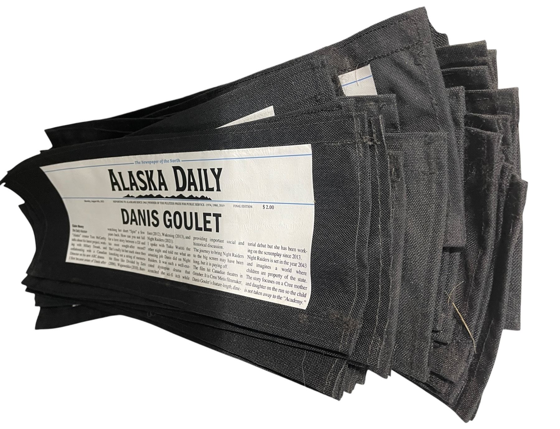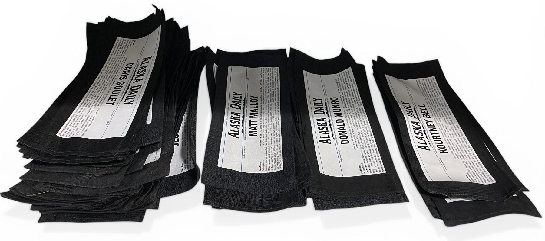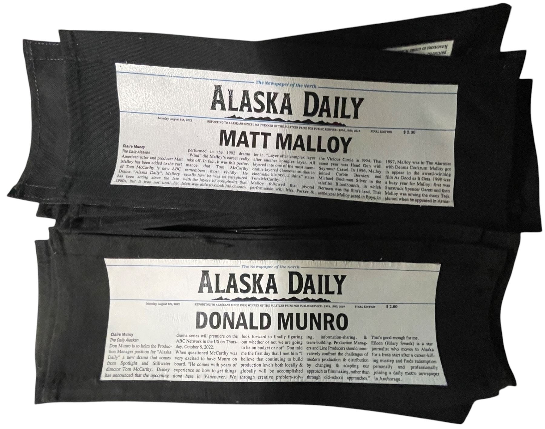 Group Of Alaska Daily Set Prop Faux Newspaper Director's Chair Backs, 15" x 6" Each