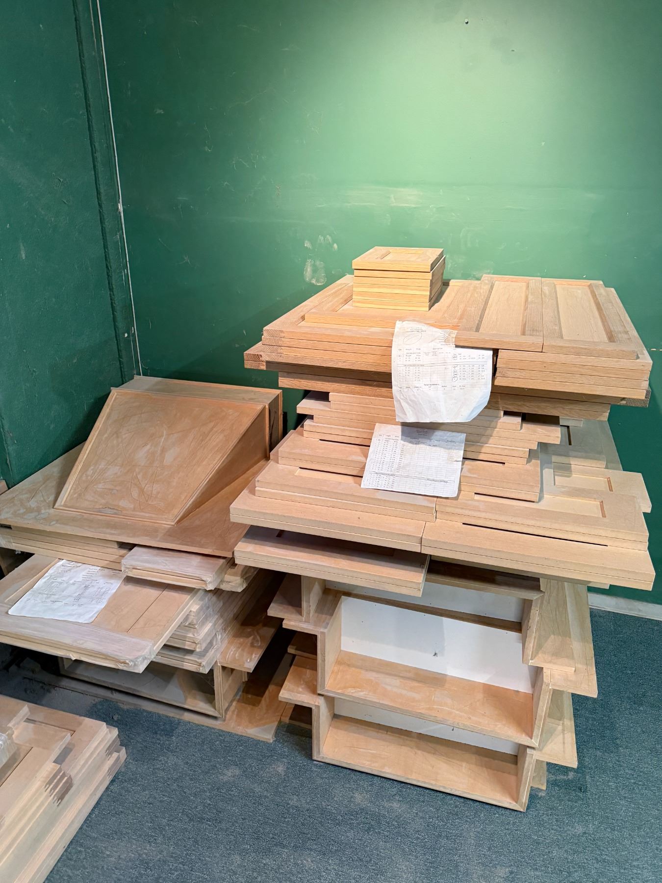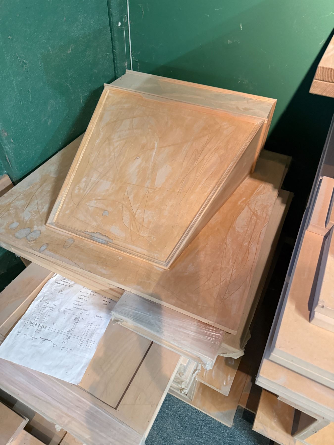Group. - Solid Wood Range Hoods (Approx. 9) & Misc. Solid wood & MDF doors & drawer fronts - Approx. 70)