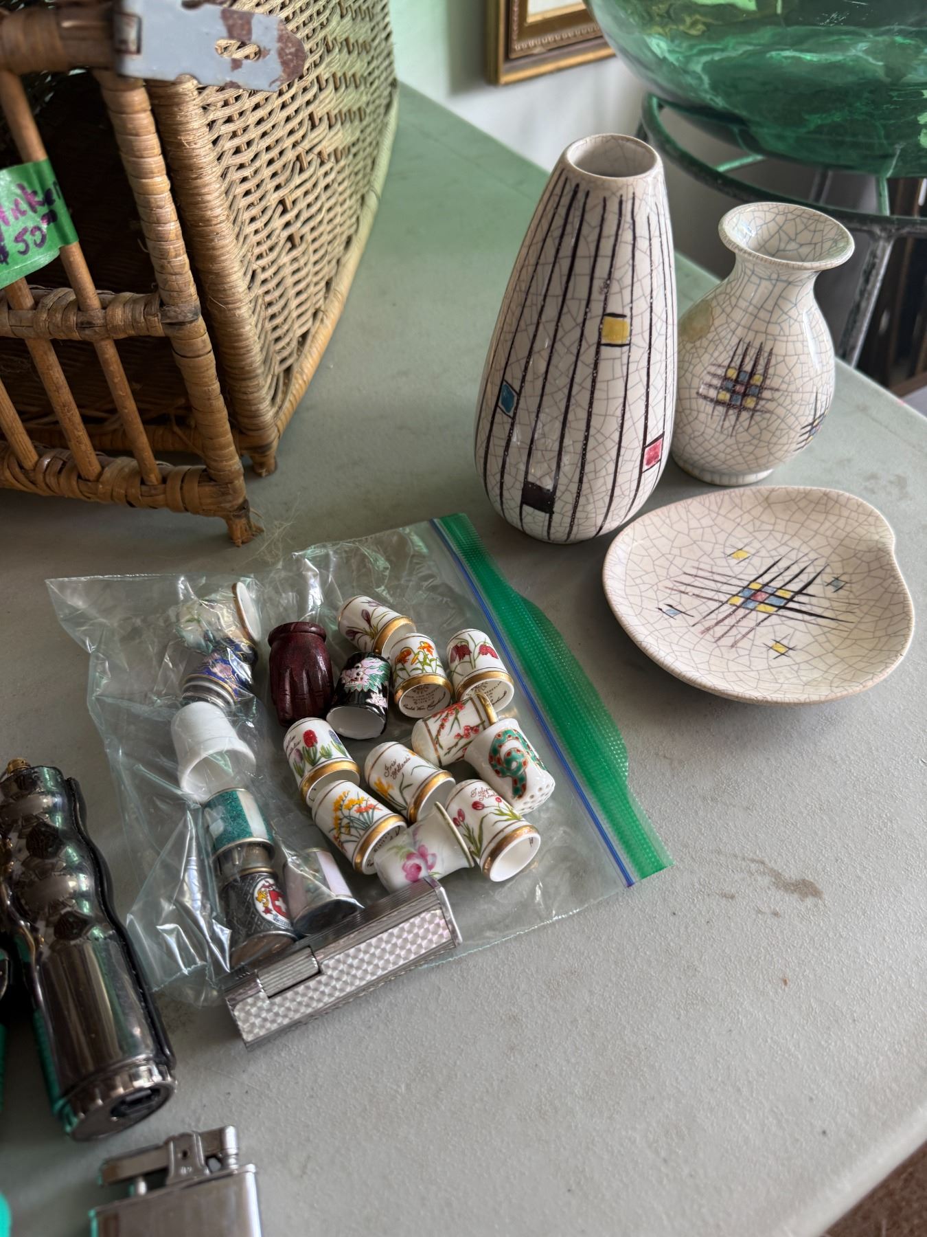 Group - Thimbles, Lighters, Costume Jewelry, German Pottery, Etc.