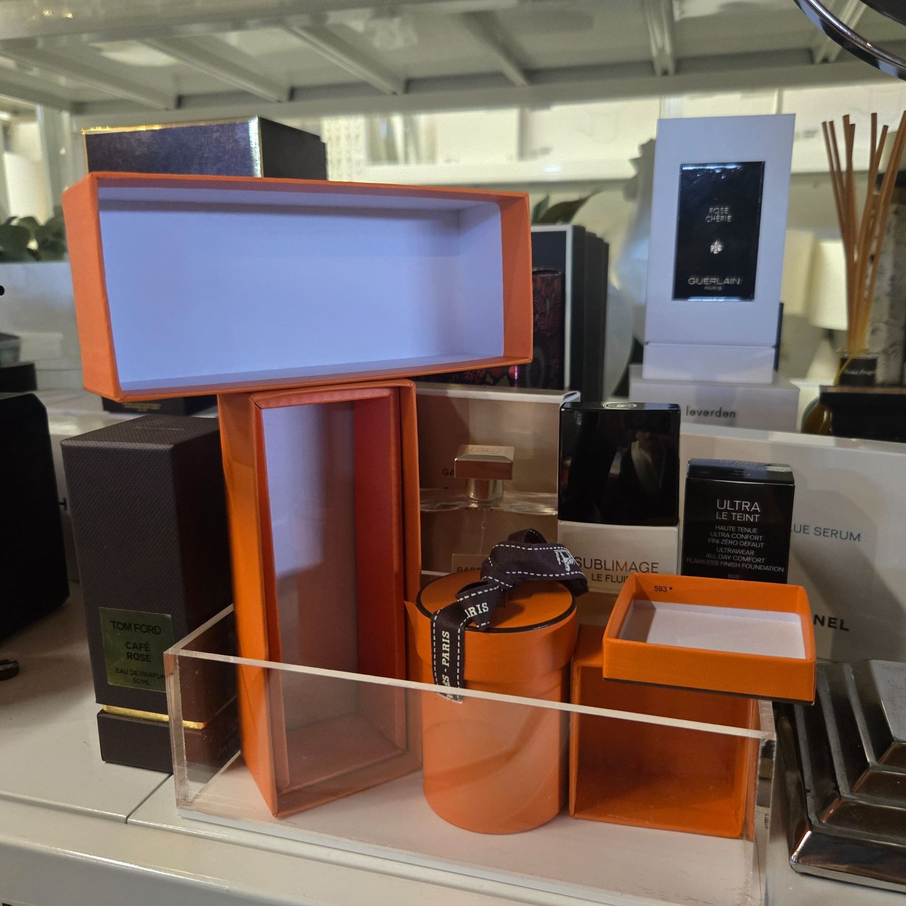 Group - Vanity Mirror, Large Group of Designer Boxes (Empty)