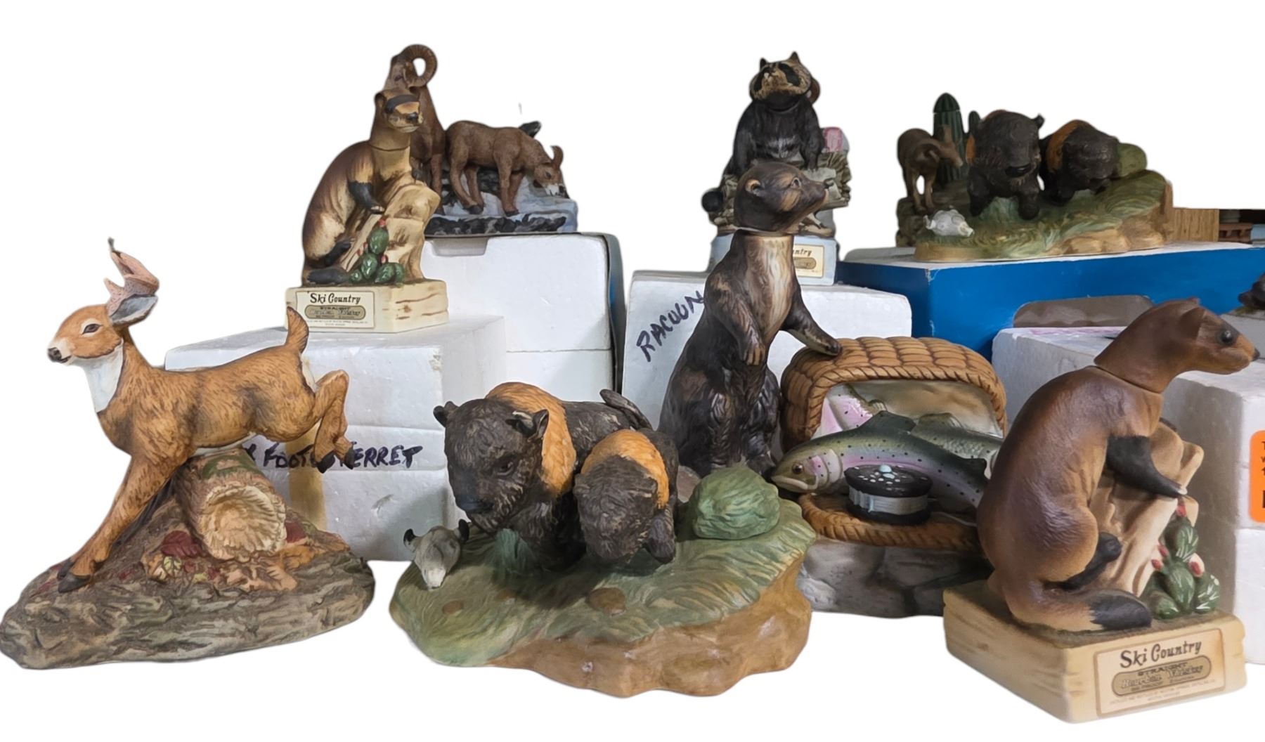 Group of 12 - 1970s & 1980s Ski Country Porcelain Mini Liquor Decanters - Tallest is 6" - Some have their original boxes