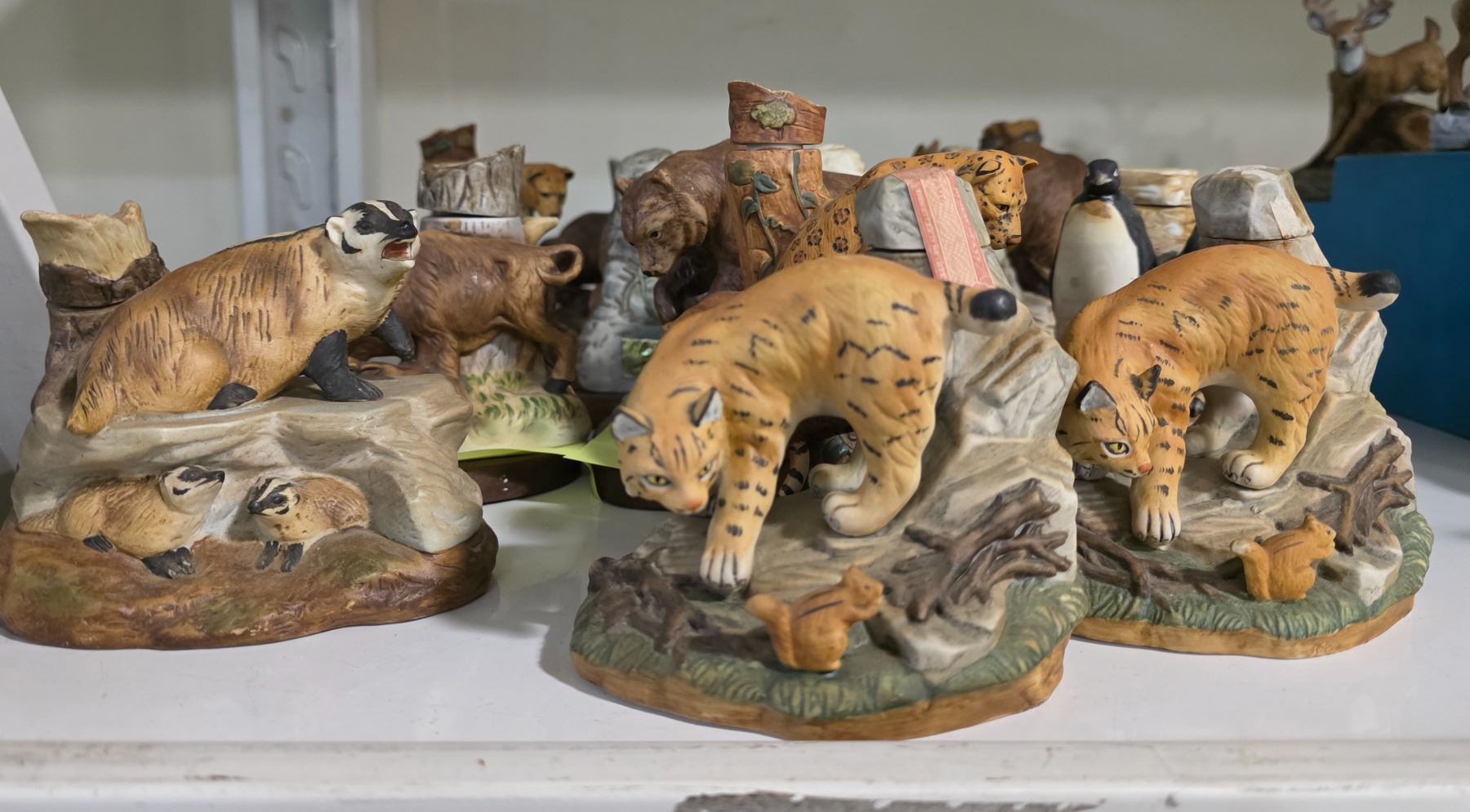 Group of 13 - 1970s & 1980s Ski Country & Haas Porcelain Wildlife Mini Liquor Decanters - Tallest is 5" - Some have their original boxes