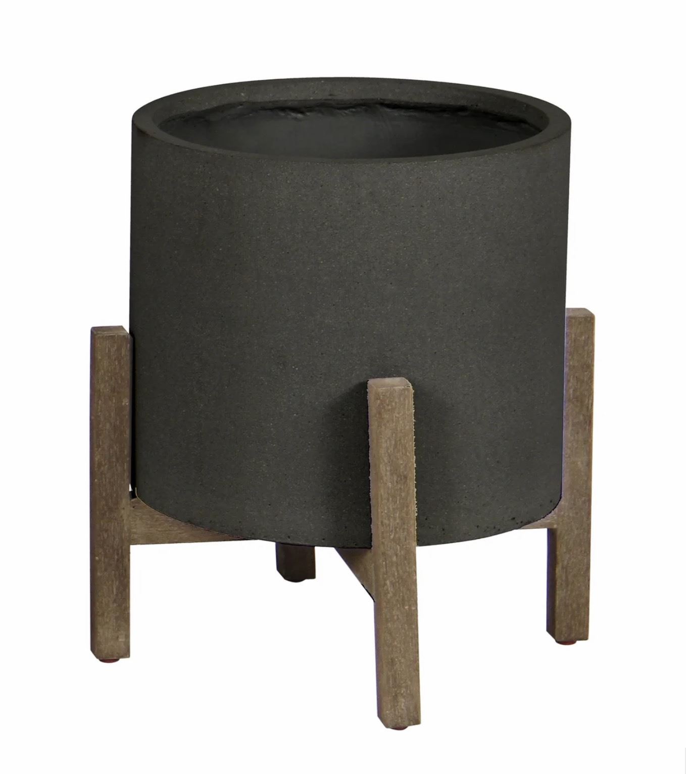 Group of 2 - BNIB LH Home Patio Round Standing Pot Small - Black Stone, RV: $276 CAD - 14.4 x 14.4 x 17.9 in (PAT015-BL)