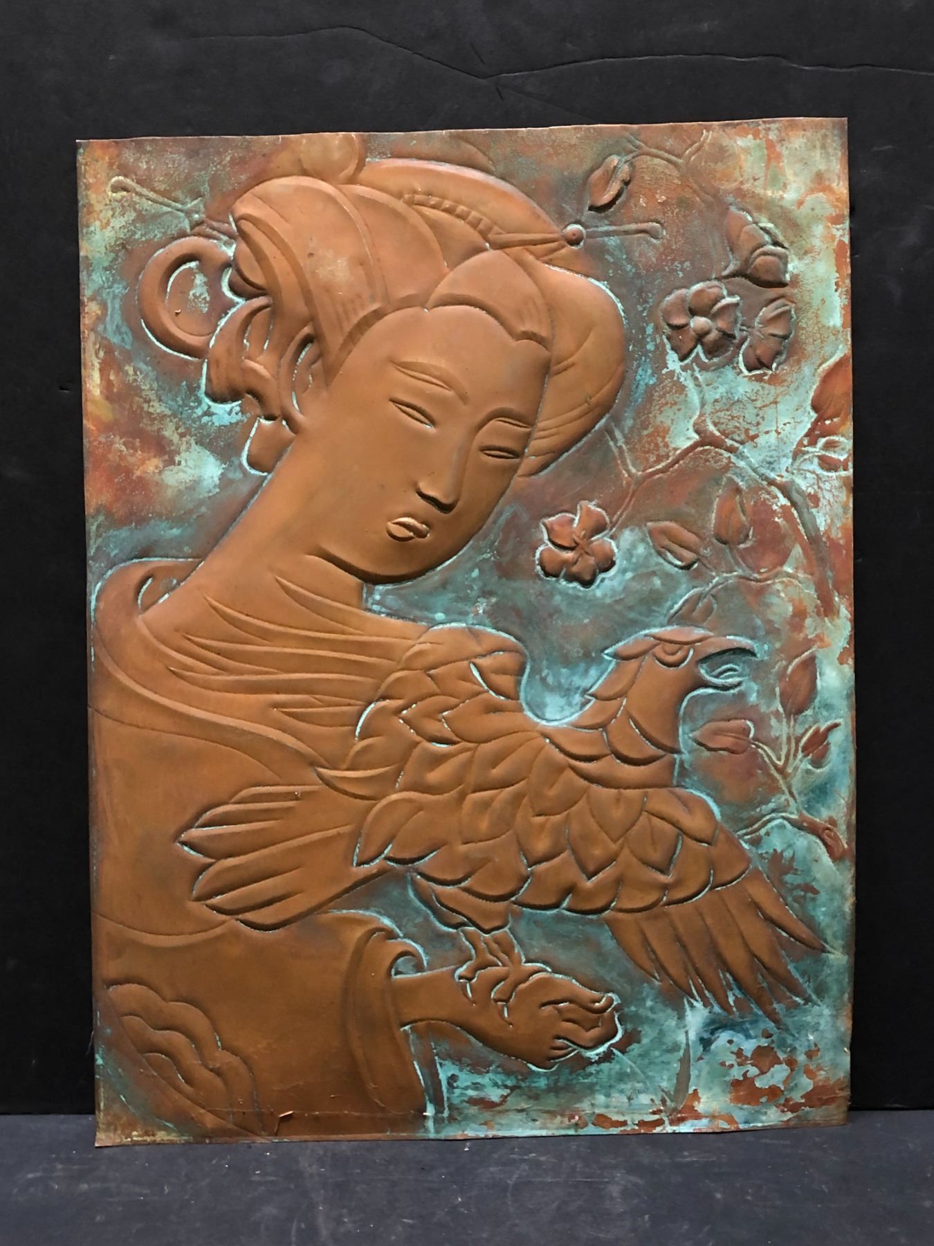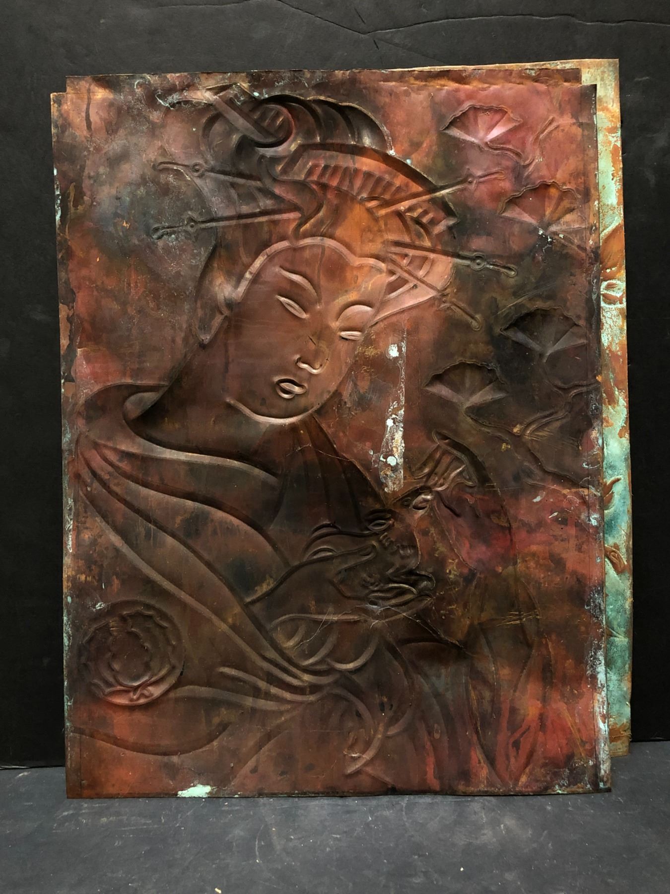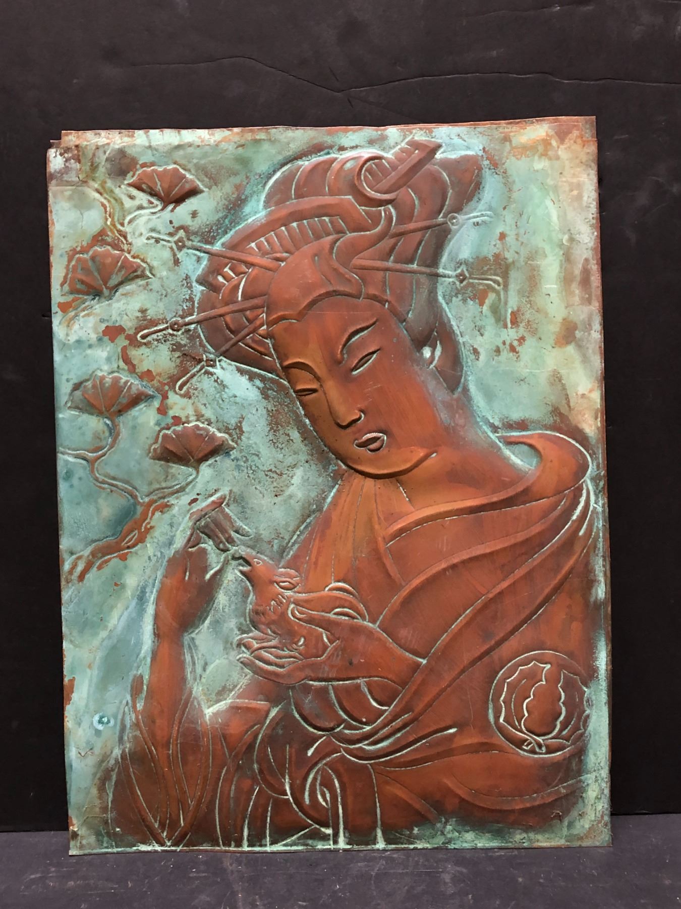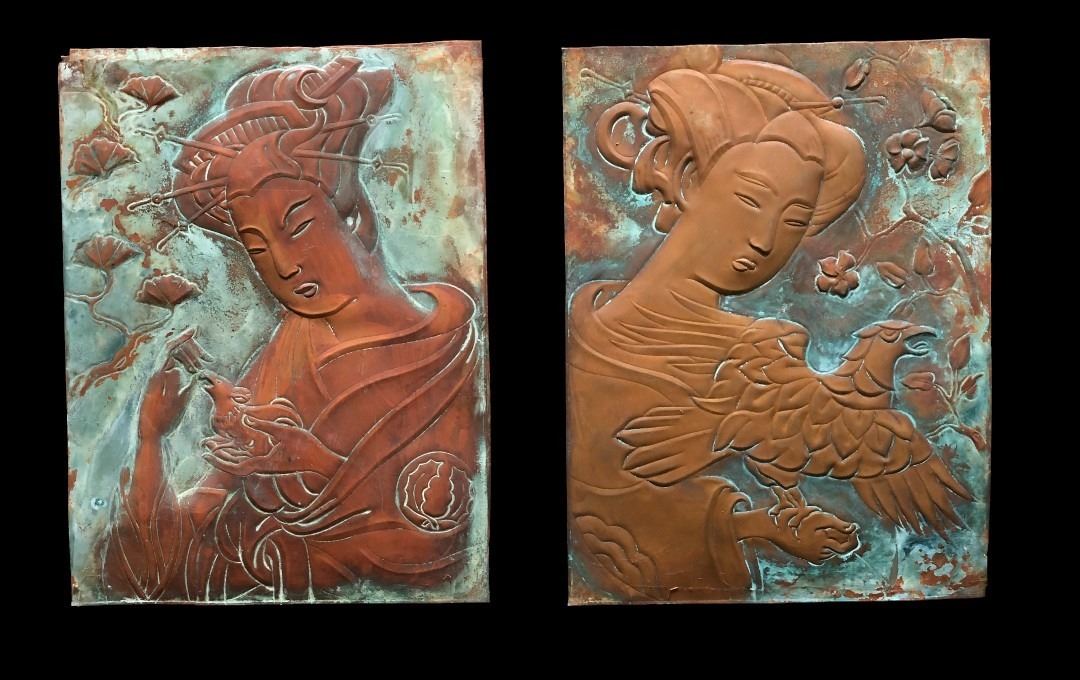 Group of 2 Chinese-made paintings on metal (approx 18" x 24")