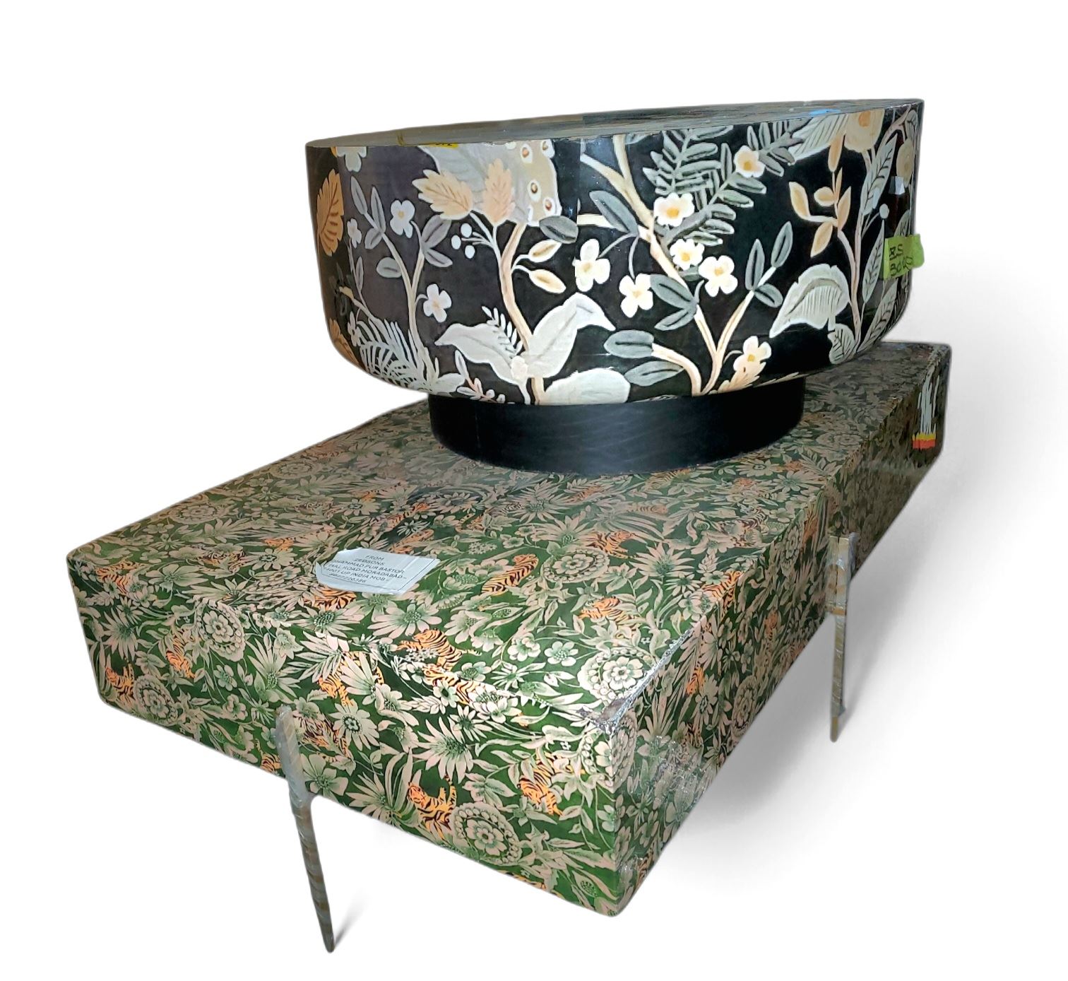 Group of 2 Floral Print Coffee Tables, Approx. H16" x 27.5" x 48" & H16" x Dia. 32"
