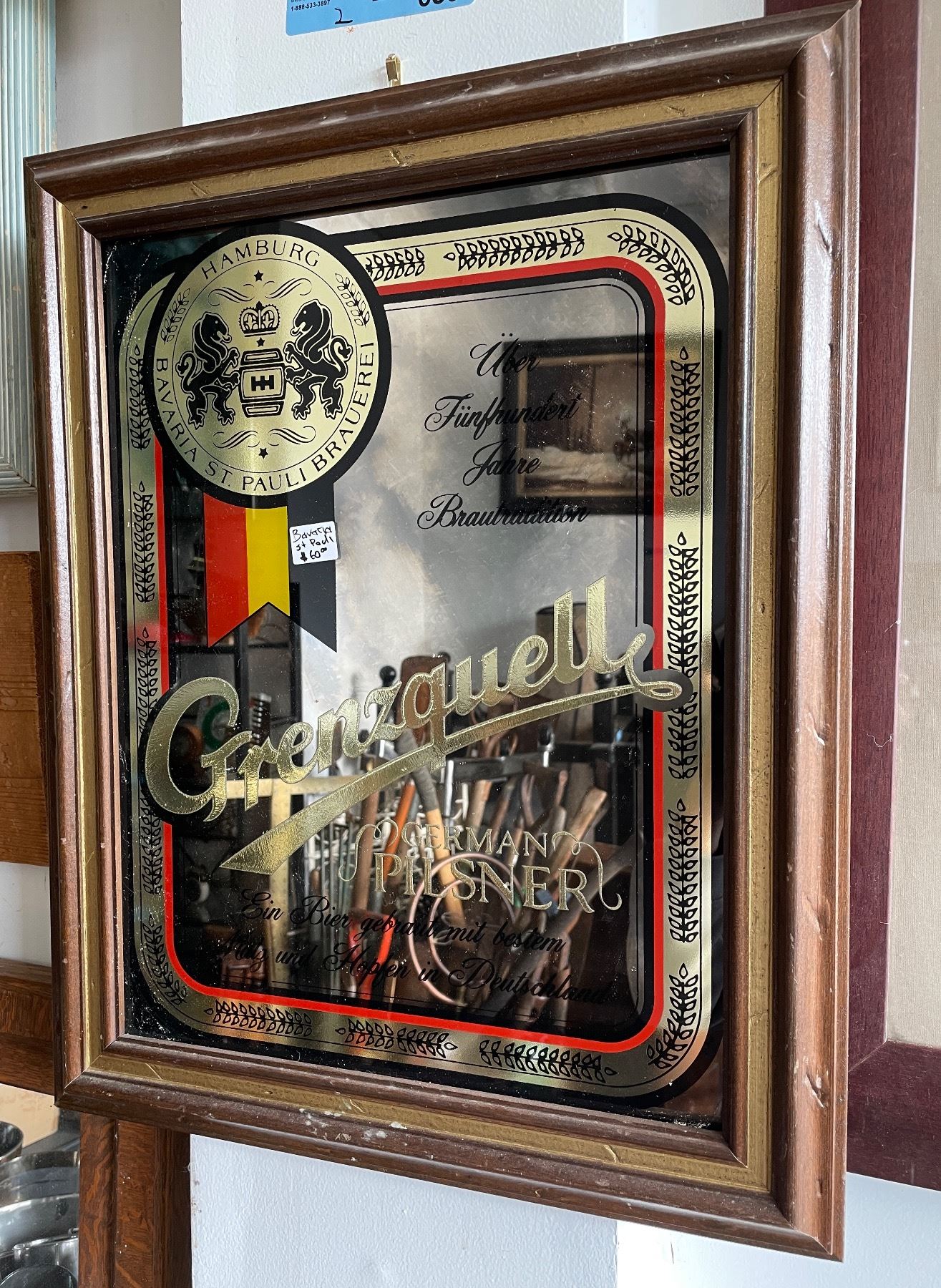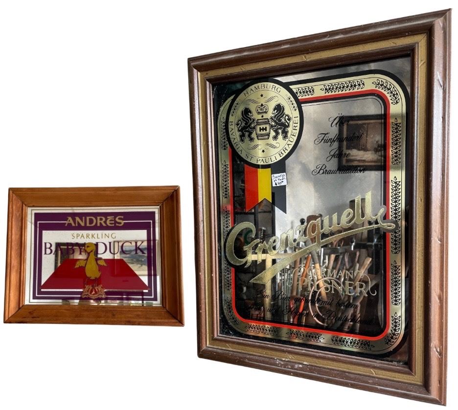 Group of 2 Framed Mirrors - Andres Sparkling Baby Duck & Grenz Quell German Pilsner