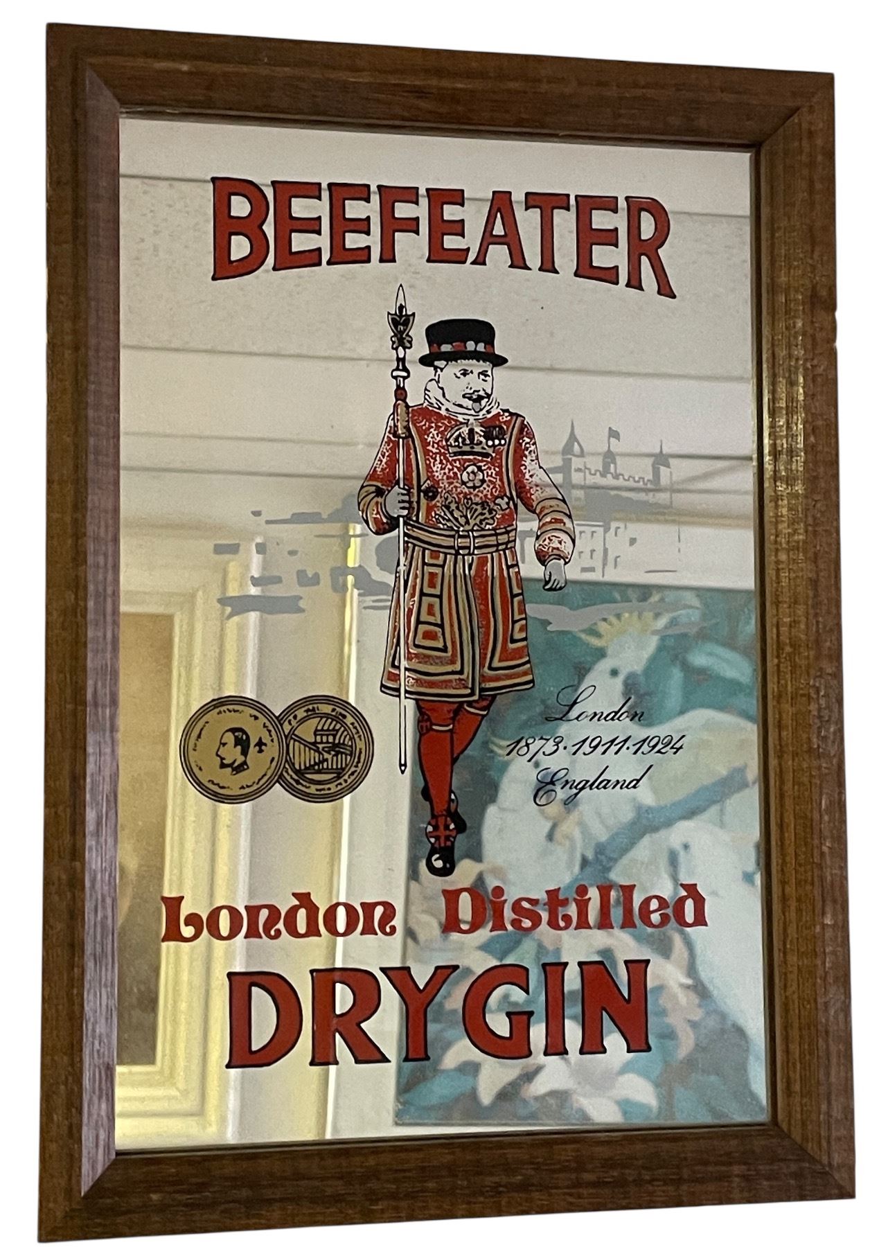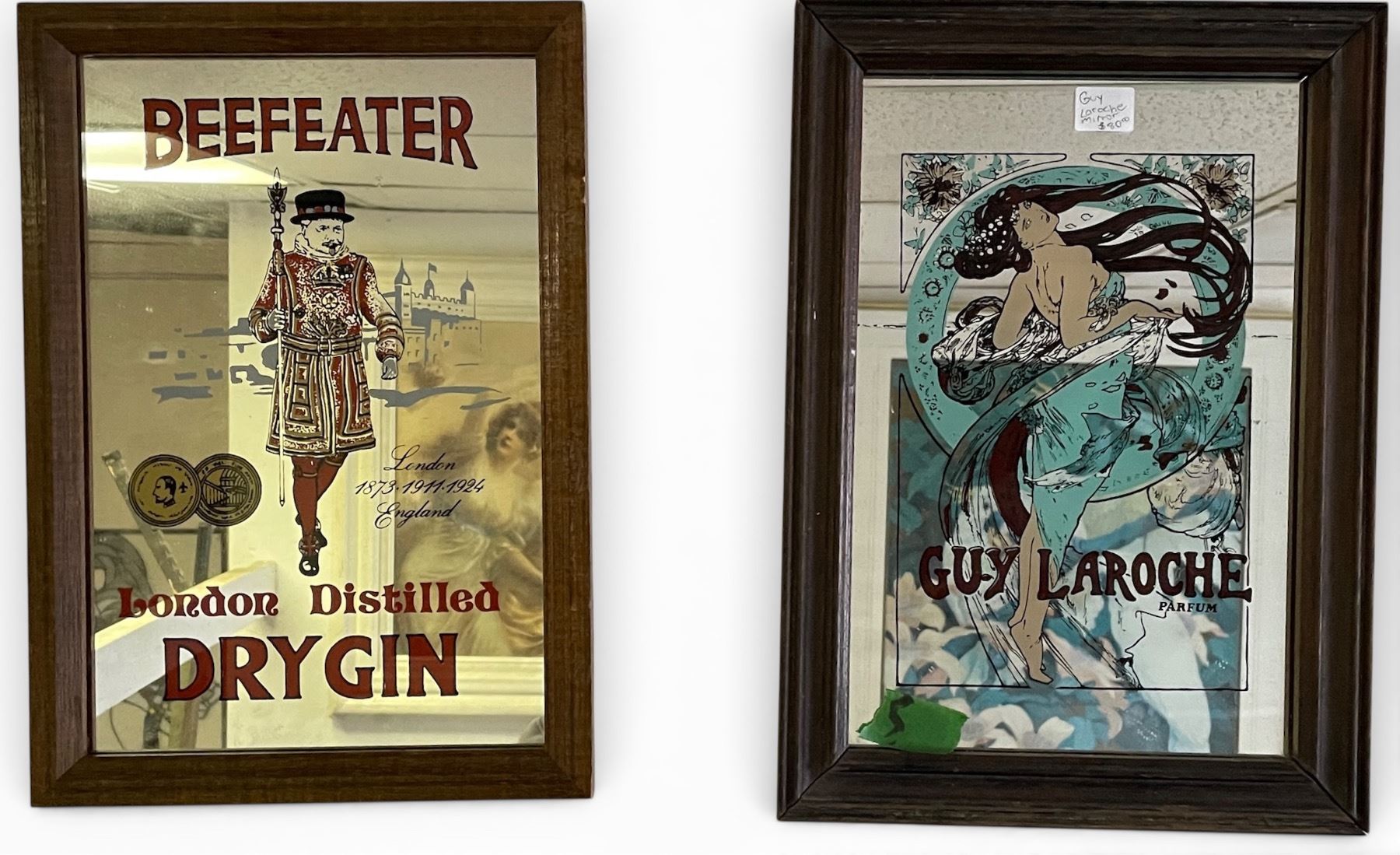 Group of 2 Framed Mirrors - Beefeater London Distilled Dry Gin & Guy Laroche