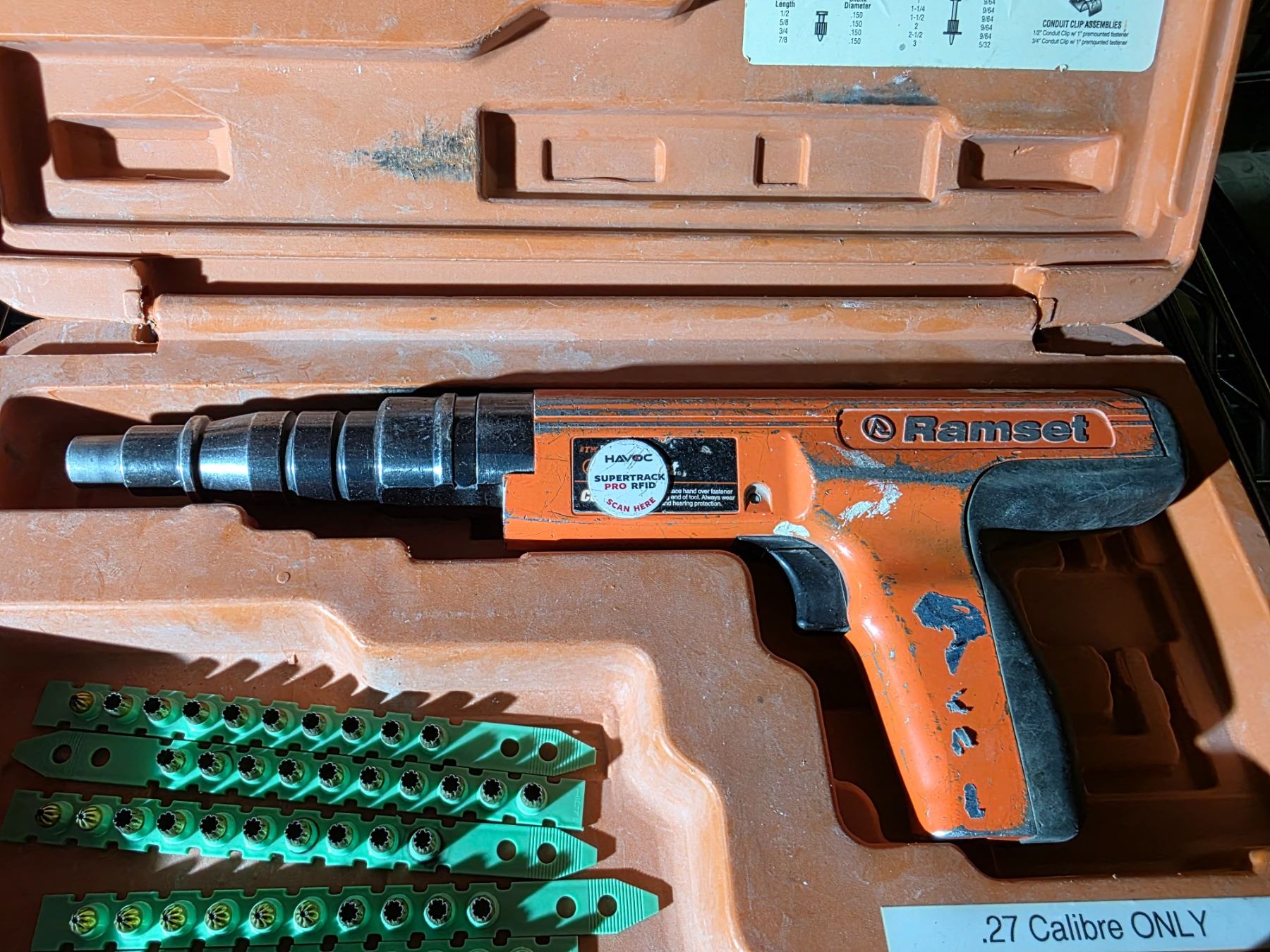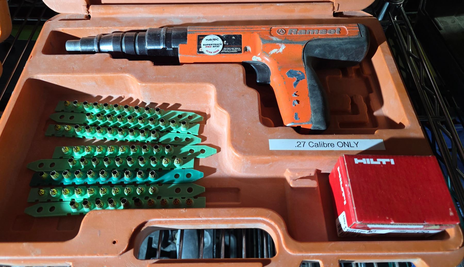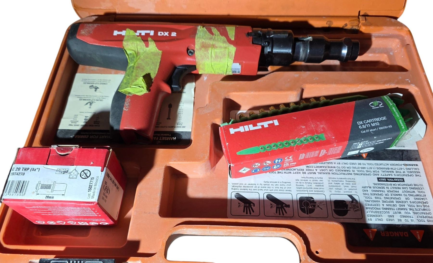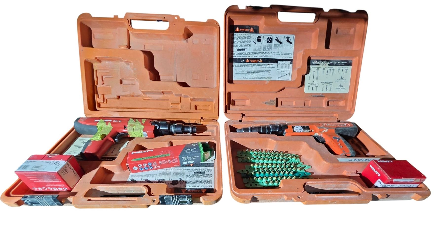 Group of 2 Hilti DX 2 Powder-Actuated Fastening Tool w/Parts & Tool Case & Ramset .27 Calbre Nail Gun w/Hitli Parts & Tool Box