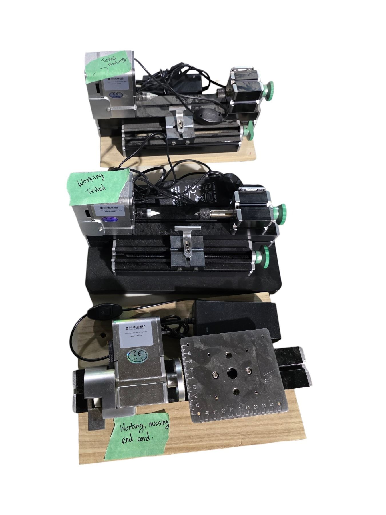 Group of 2 Mini Makers Mini Woodturning Lathe Machine & 1 Sanding Machine - Tested - Working Condition