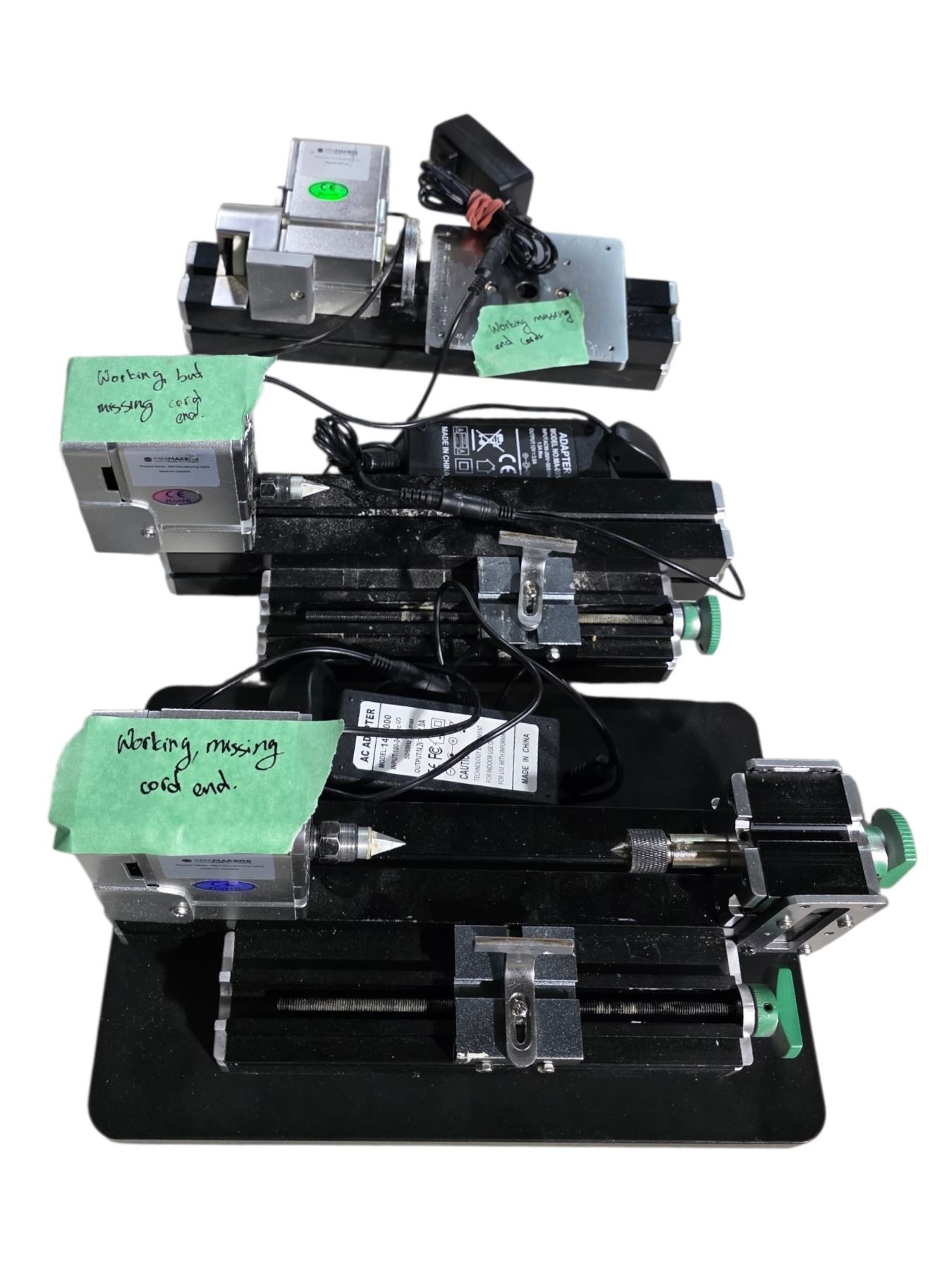 Group of 2 Mini Makers Mini Woodturning Lathe Machine & 1 Sanding Machine - Tested - Working Condition (missing Cord Ends)