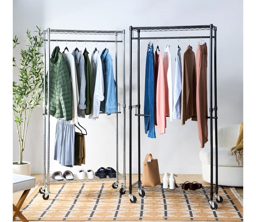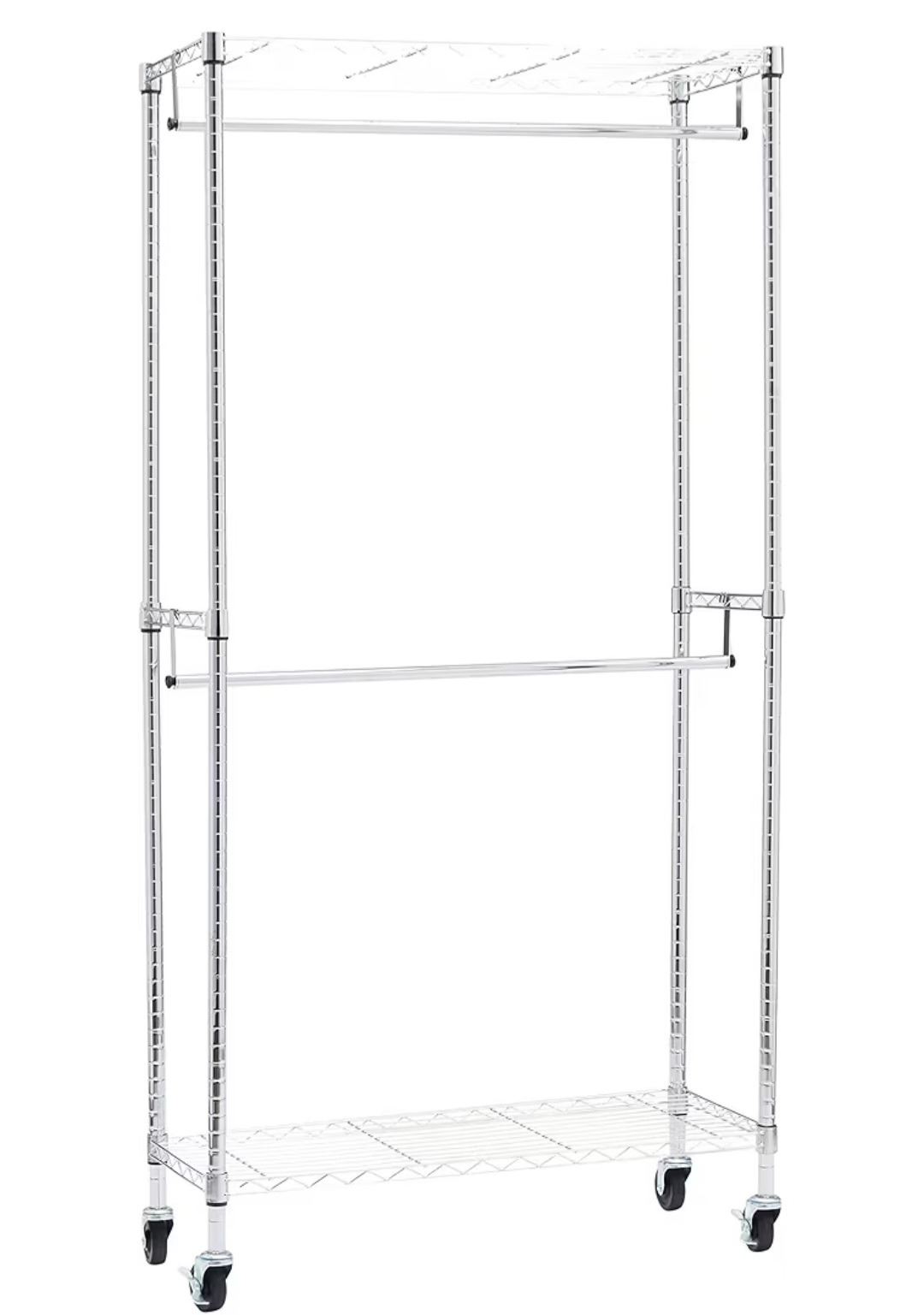 Group of 2 - New Amazon Basics Double Rod Freestanding Closet - Silver