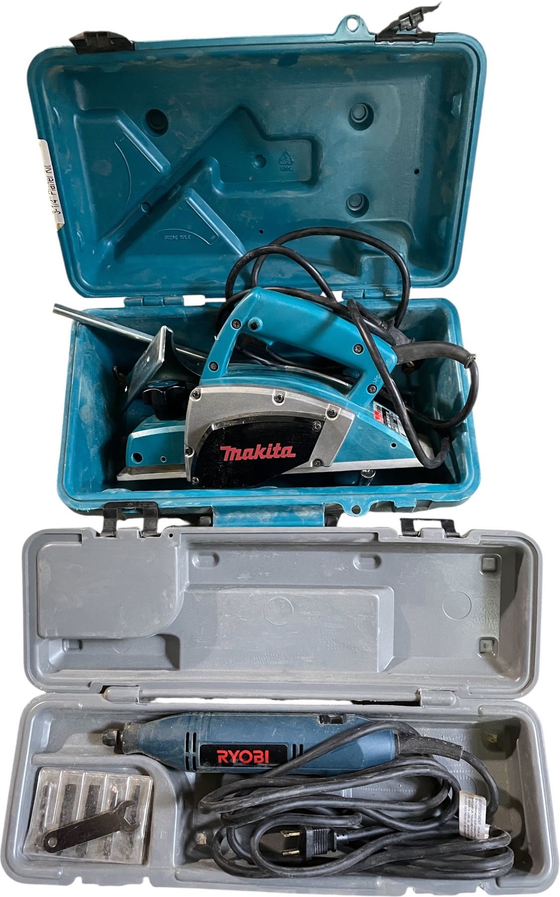 Group of 2 Tools - includes RYOBI Detail Carver DC500 & MAKITA Corded Electric Power Planer, with Hard Cases