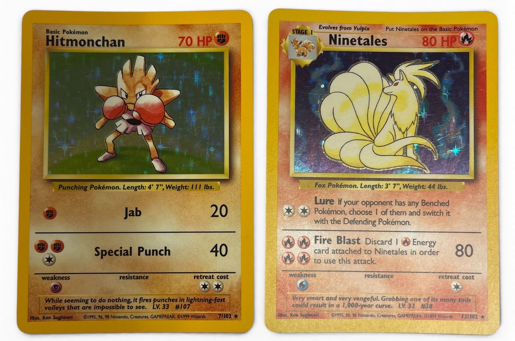 Group of 2 WOTC 1999: Pokémon Base Set Hitmonchan 7/102 and Ninetales 12/102 Holo