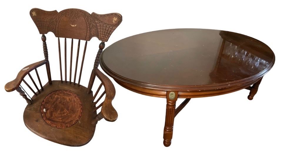 Group of 2 - Wooden Chair Top w/Wood Coffee Table