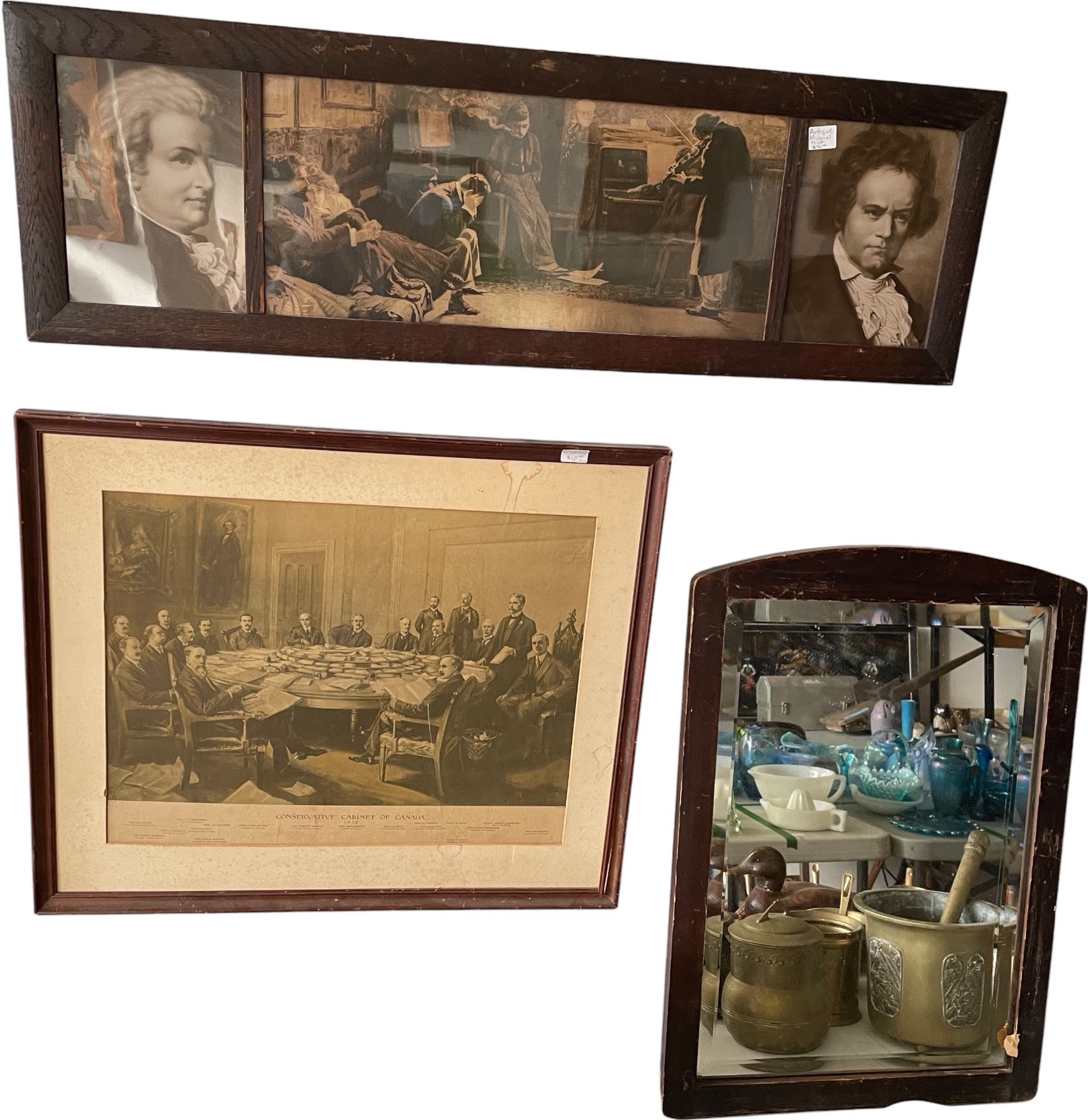 Group of 3 Art - Conservative Cabinet of Canada 1912, Mirror & Antique Musical Print