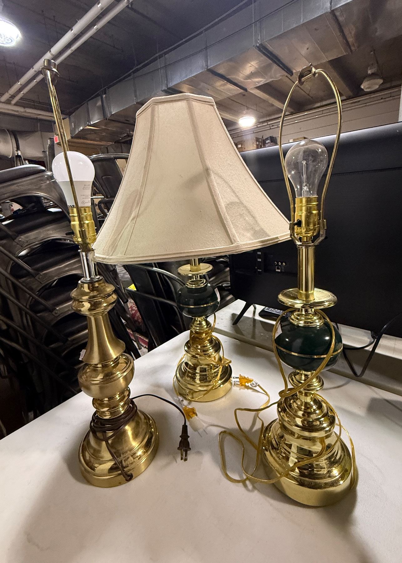 Group of 3 Lamps - Golden and Green - One shade