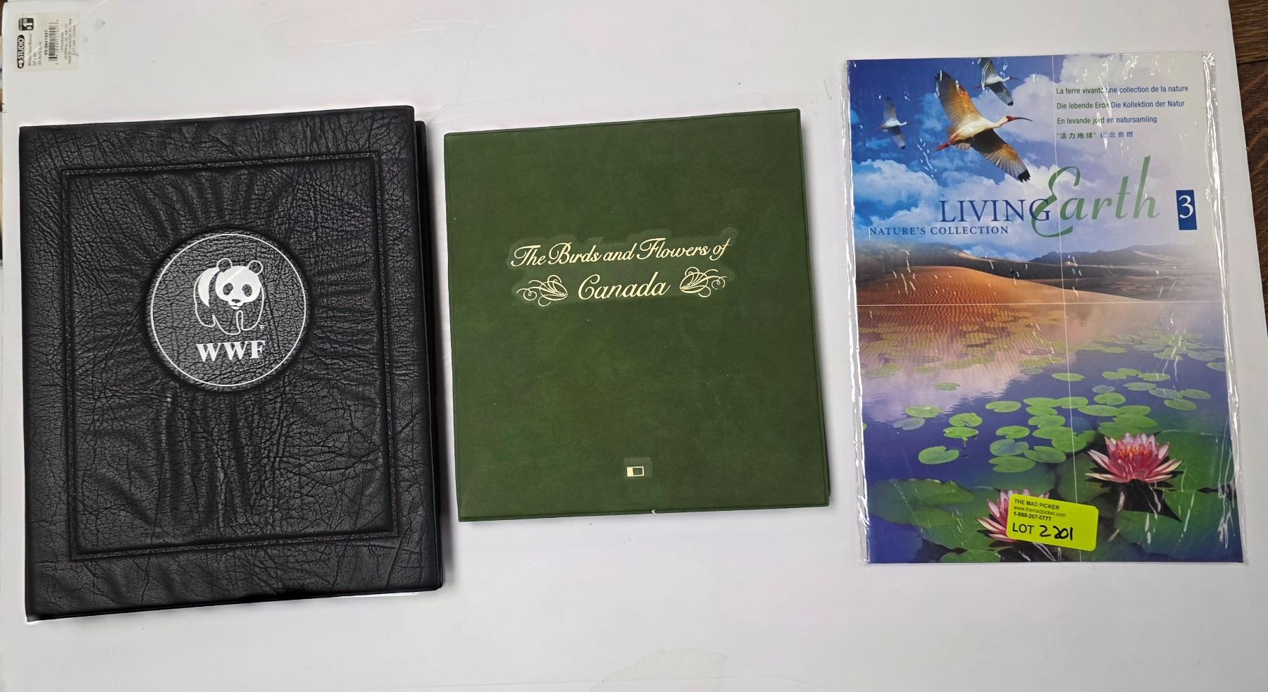 Group of 3 Mint Stamp Collections * "Living Earth", "Birds and Flowers of Canada" First Day Issues Set, &" WWF" First Day Issues Set. All with documents