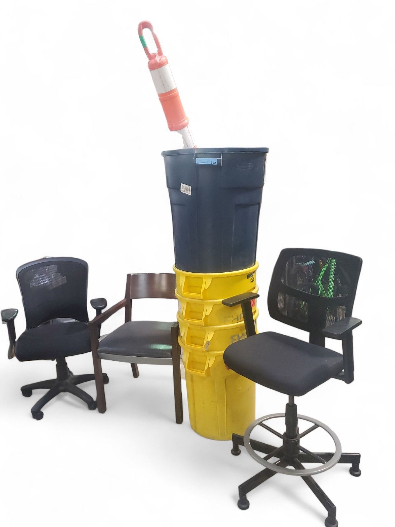 Group of 3 Misc. Chairs & 5 Trash Cans