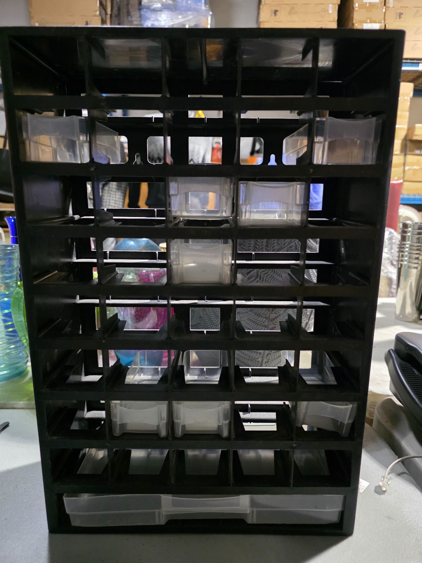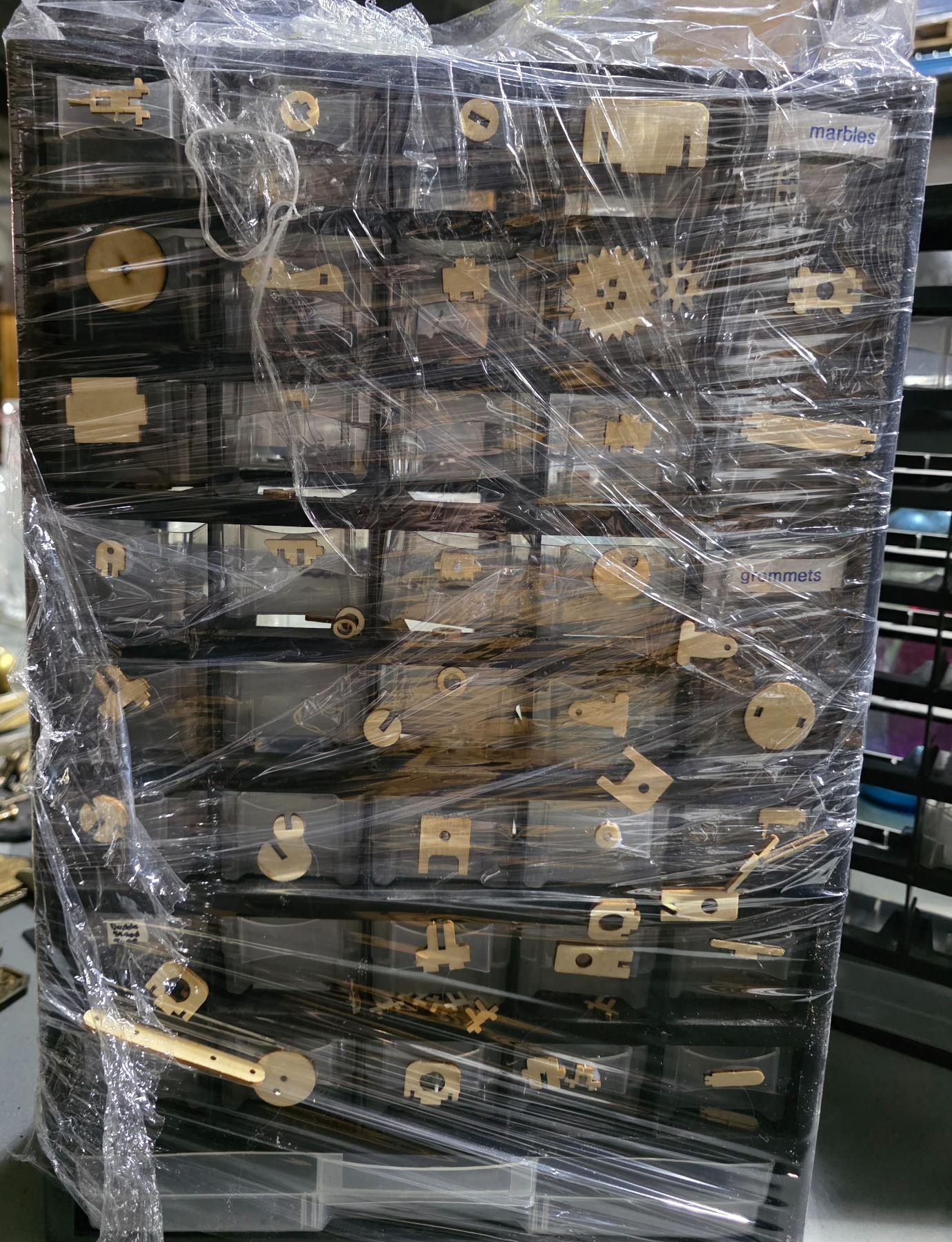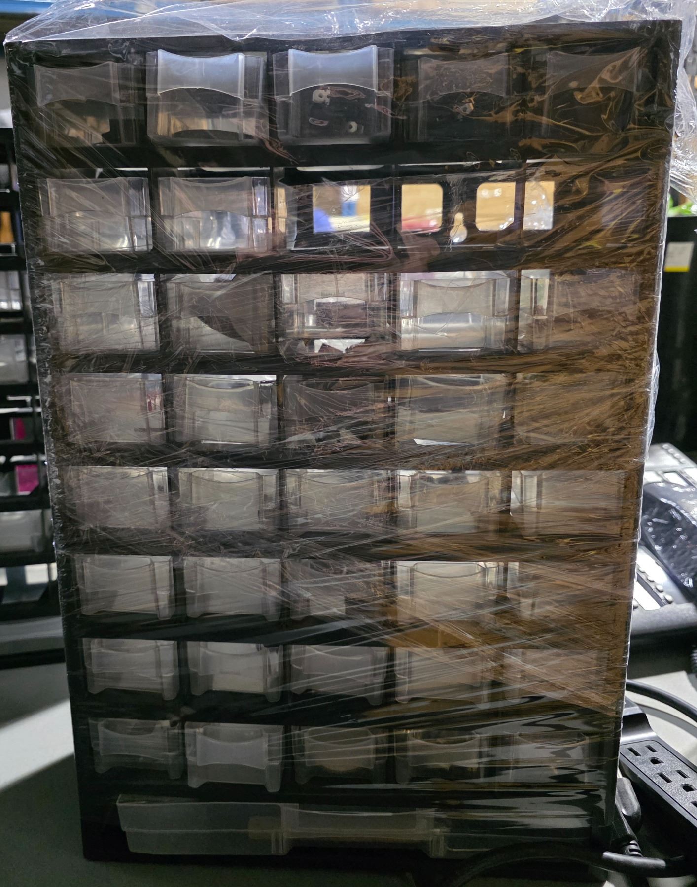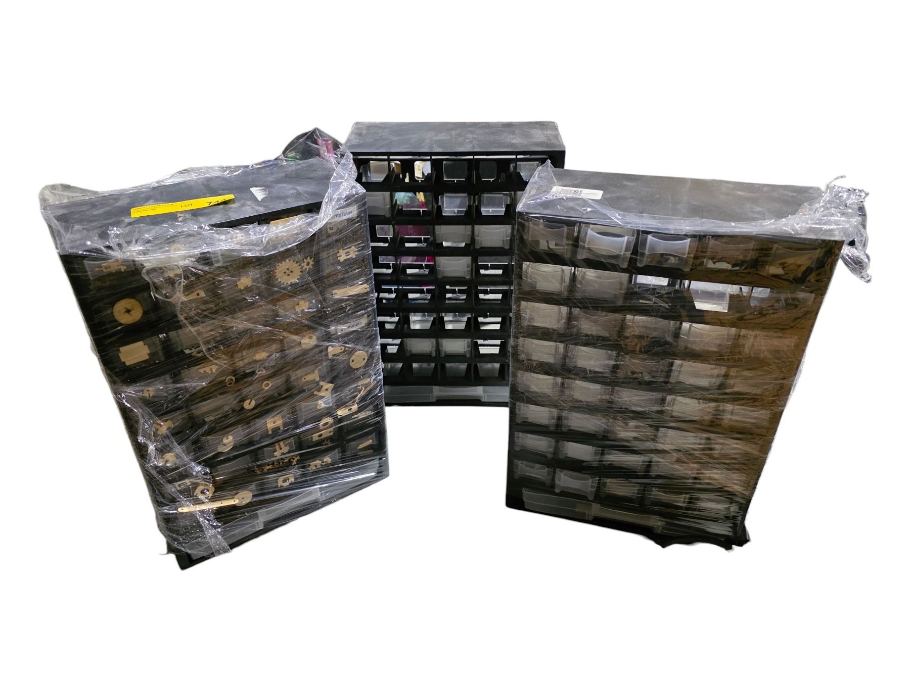 Group of 3 Multi-Drawer 18" H Storage Cabinets - includes Contents (Electric Components, Small Wooden pcs & More)
