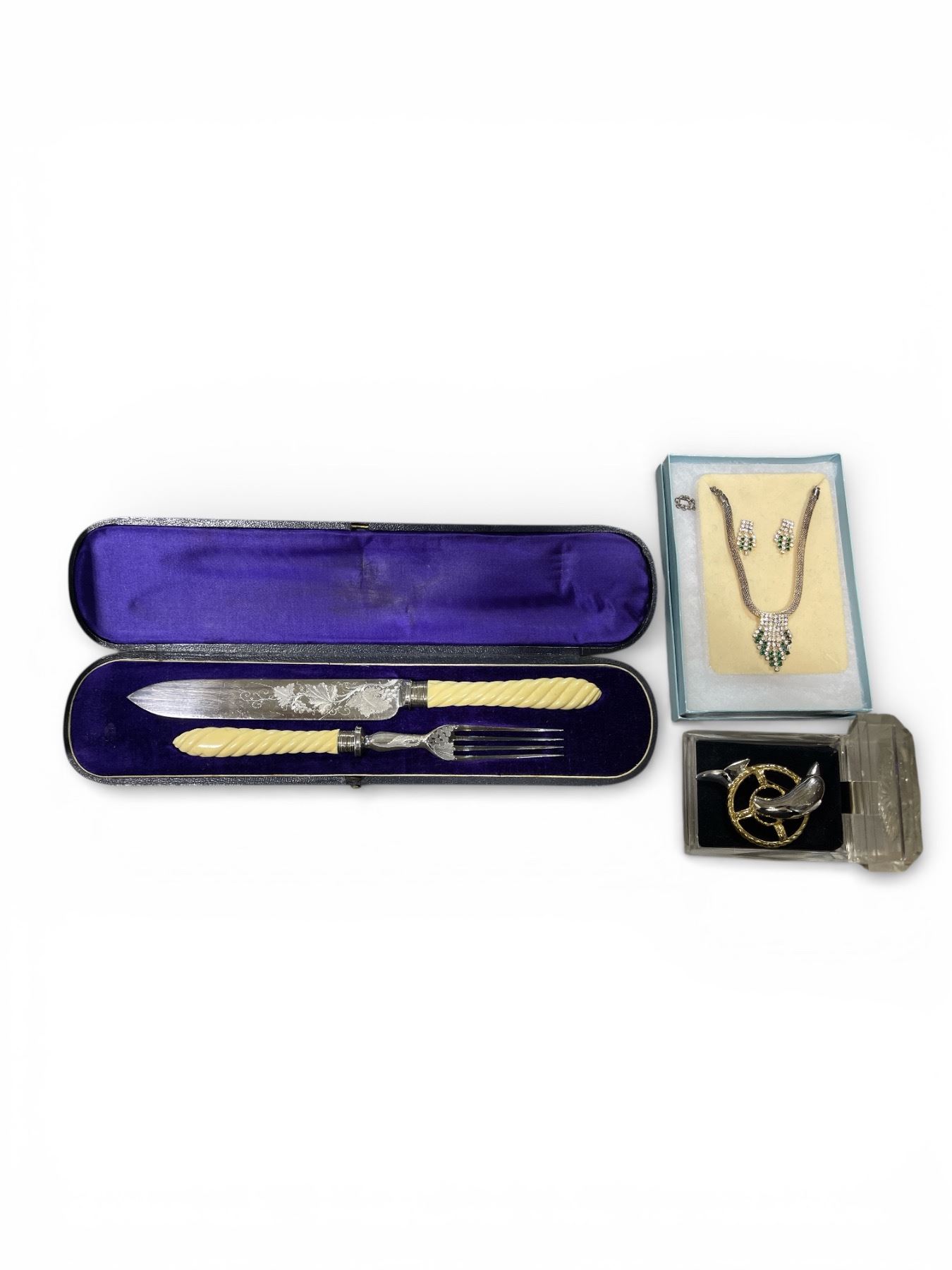 Group of 3 - Necklace, Broach, Fork & Knife Set