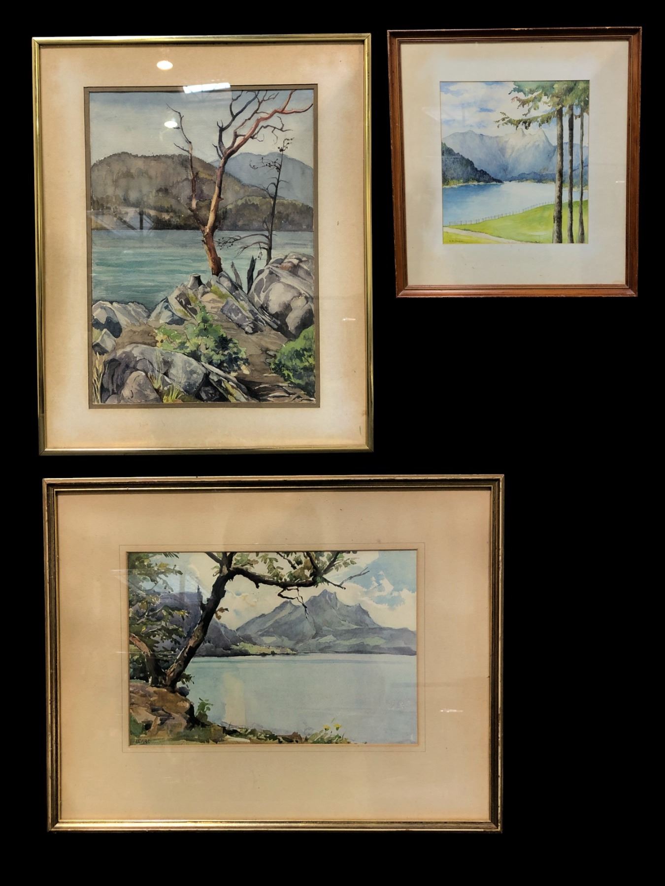 Group of 3 assorted signed framed watercolour paintings (approx 19" x 20")