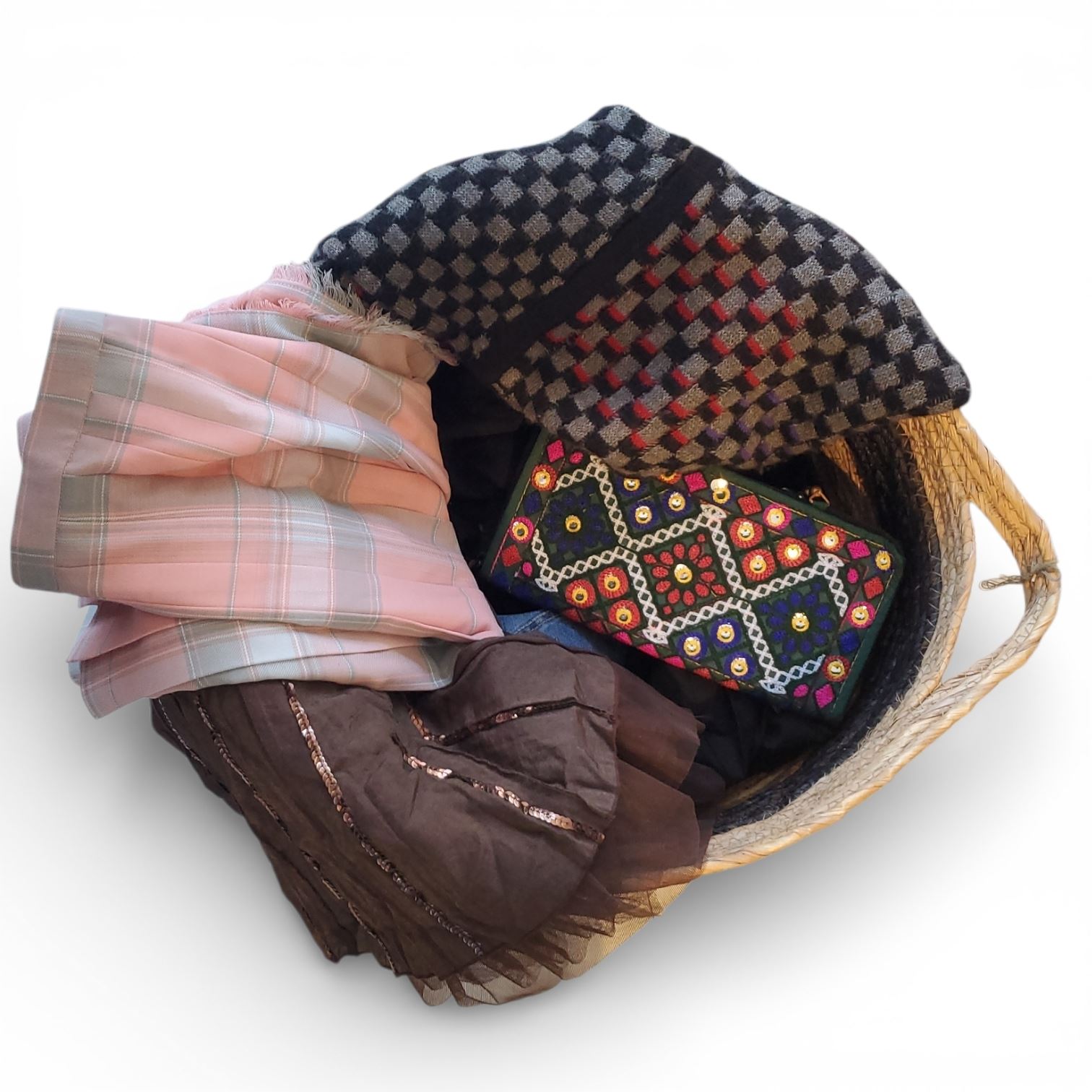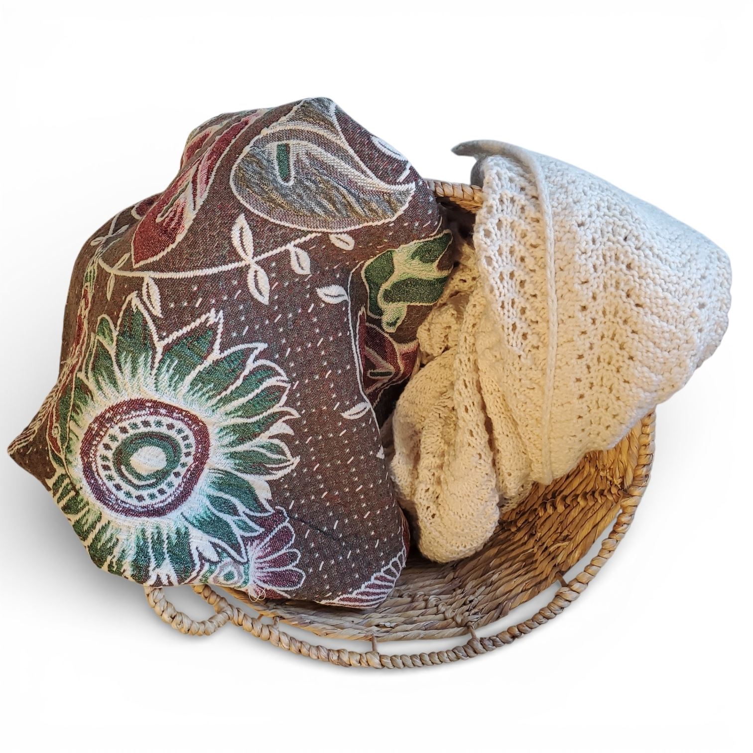 Group of 3 baskets & Accessories Content - includes crochet Blanket, Tops & More