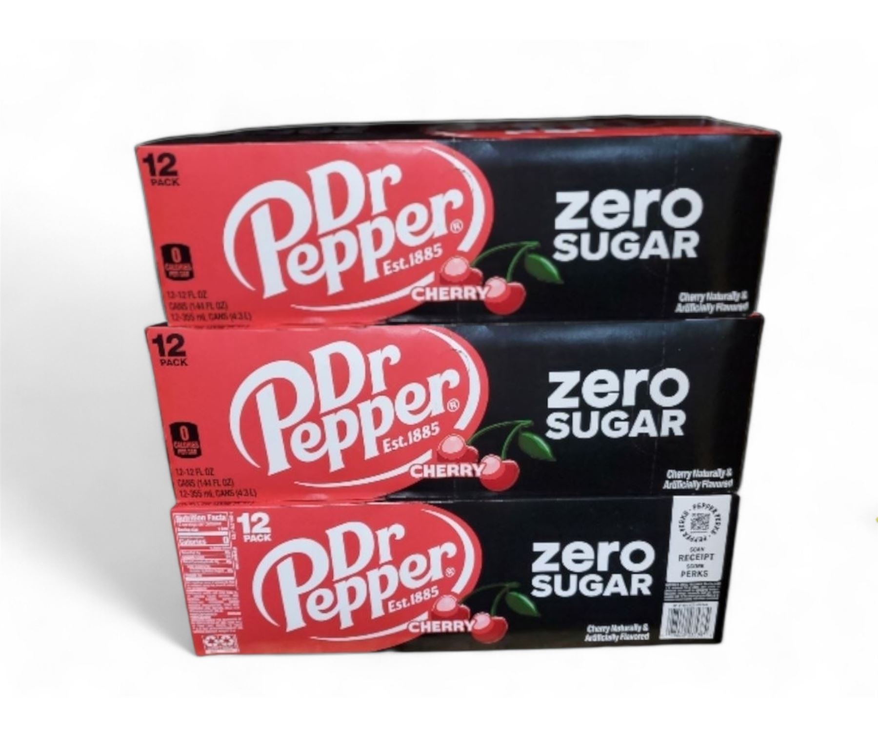 Group of 3 crates of Dr Pepper Cherry Zero Sugar Drink - exp Nov 2025