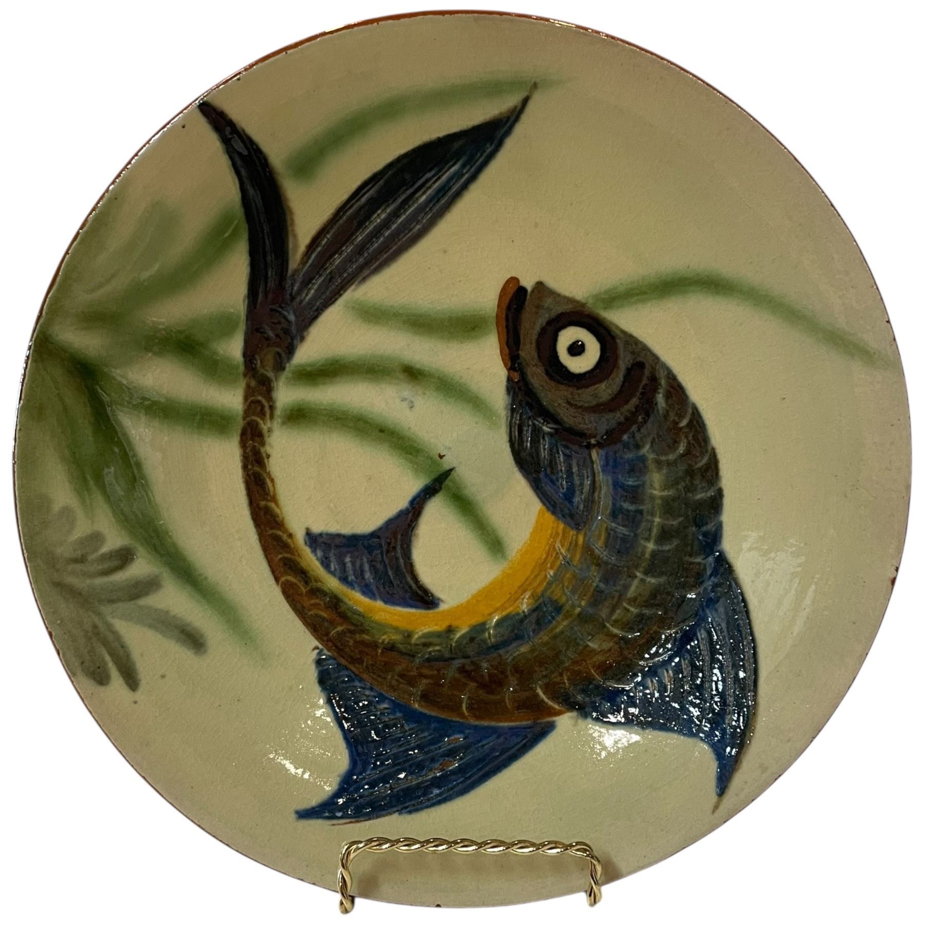 Group of 4 Collectible Ceramics & China * Glazed Ceramic Fish Plate and Vase, Blue Vase & Bunnykins Musical Figurine
