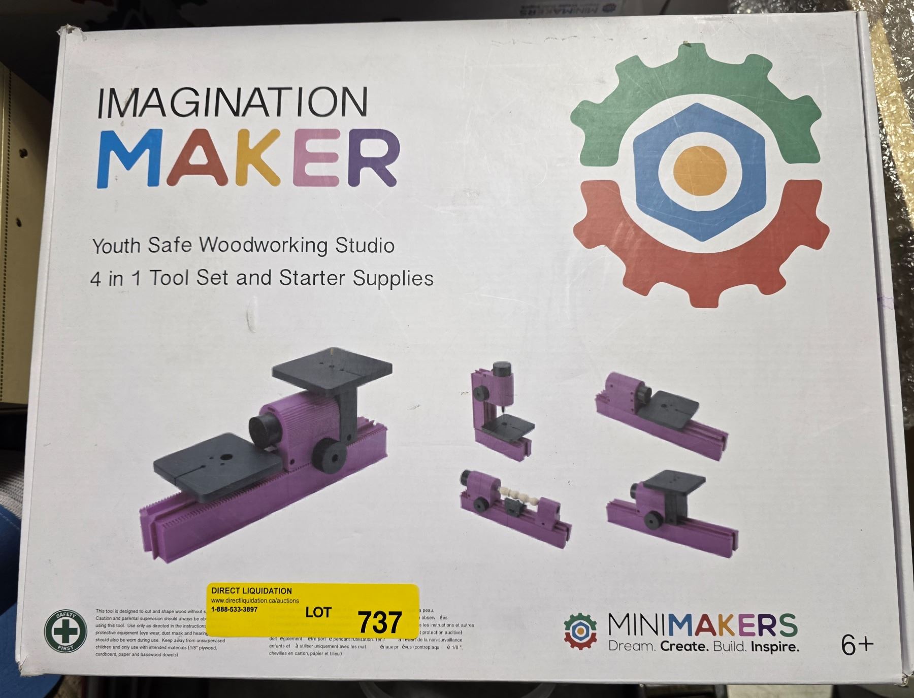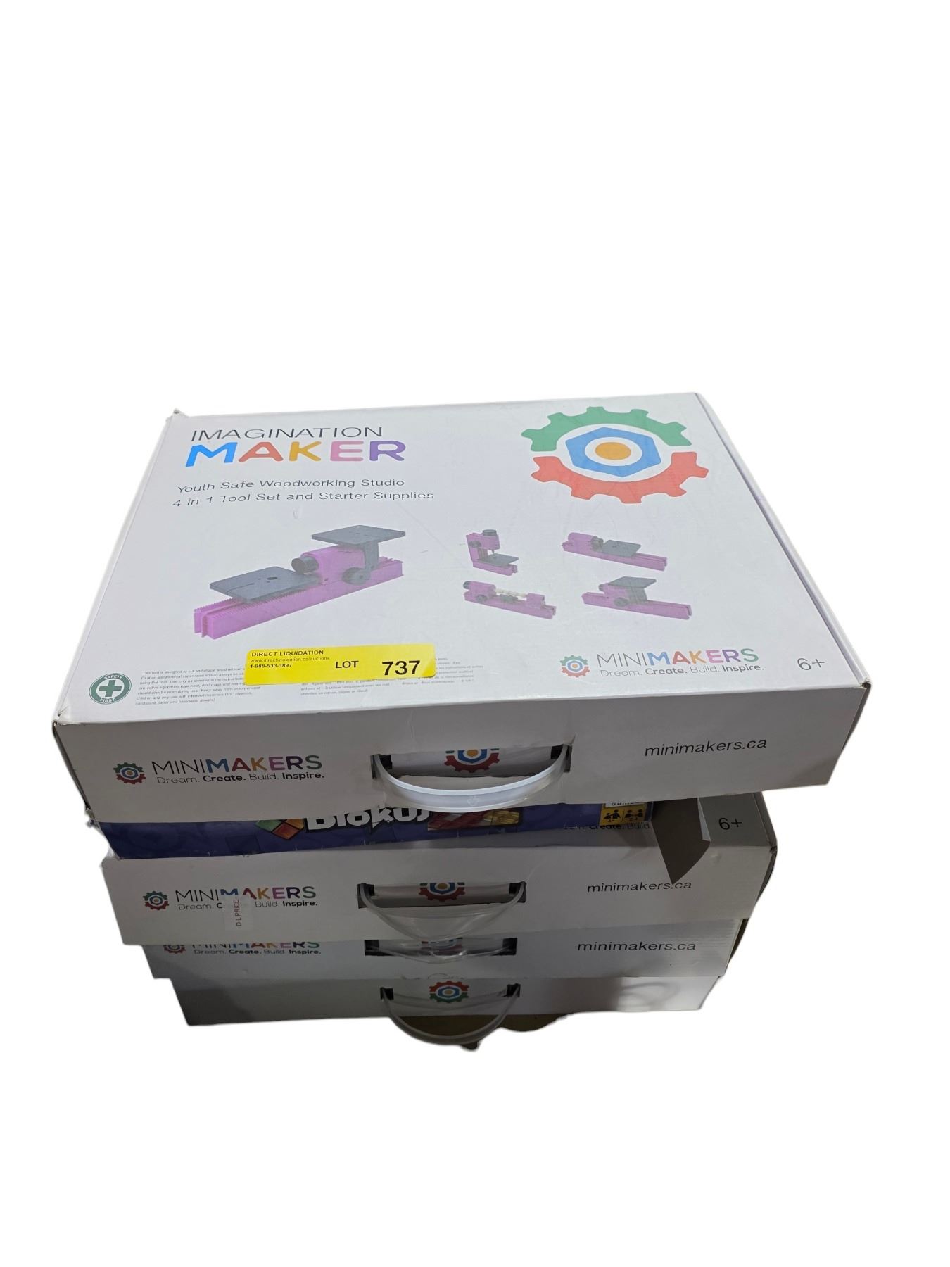 Group of 4 Mini Makers Woodworking Studio 4 in 1 Tool Set & Starter Supplies - includes 1 Mattel Blokus Board Game (Open Boxes - Might Be incomplete)