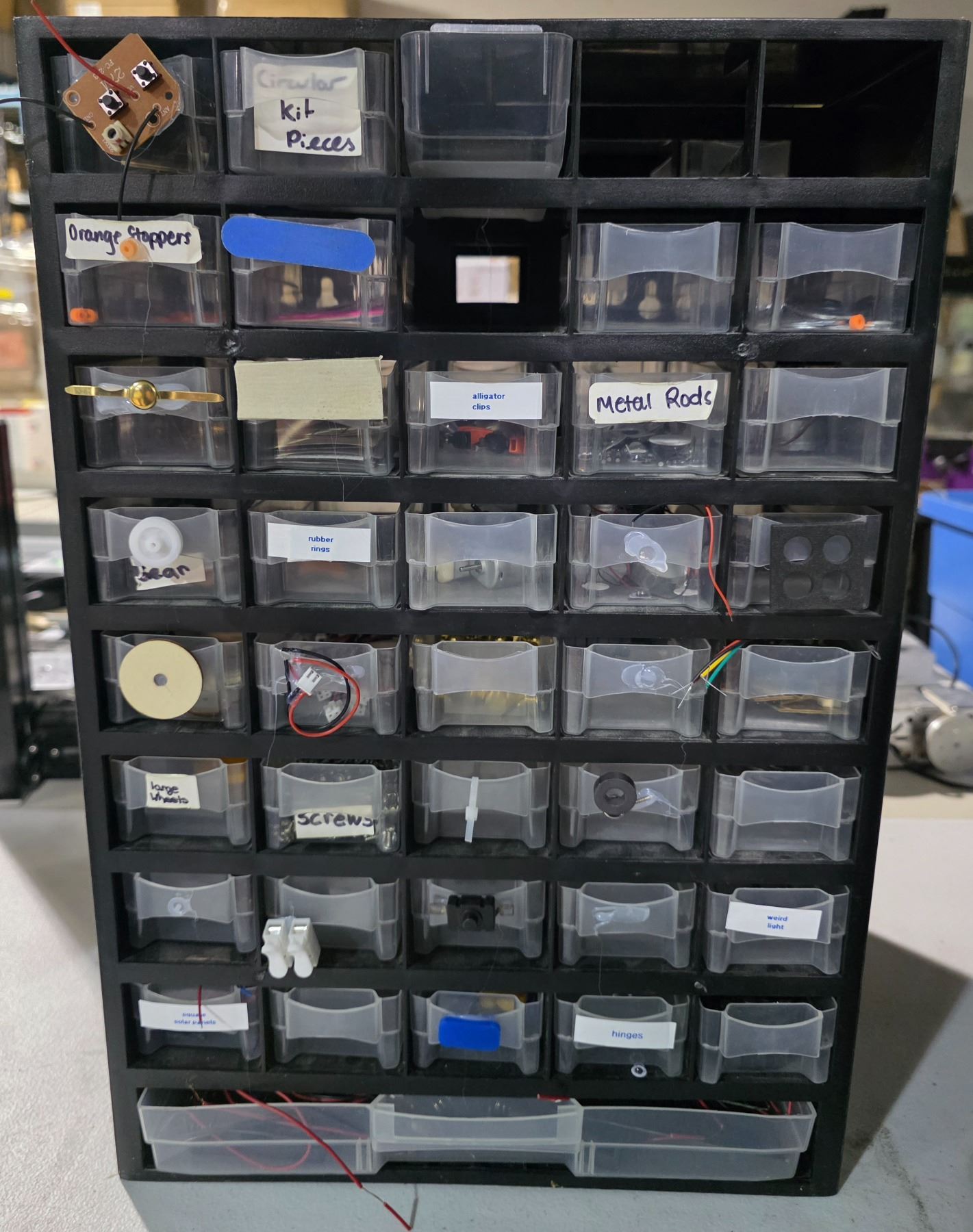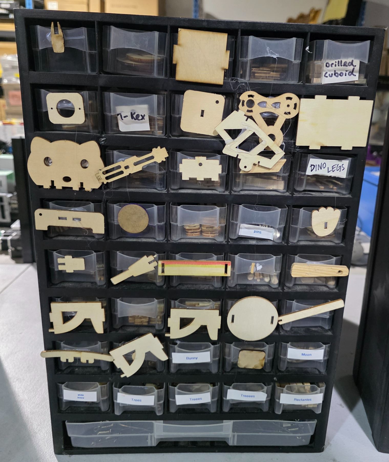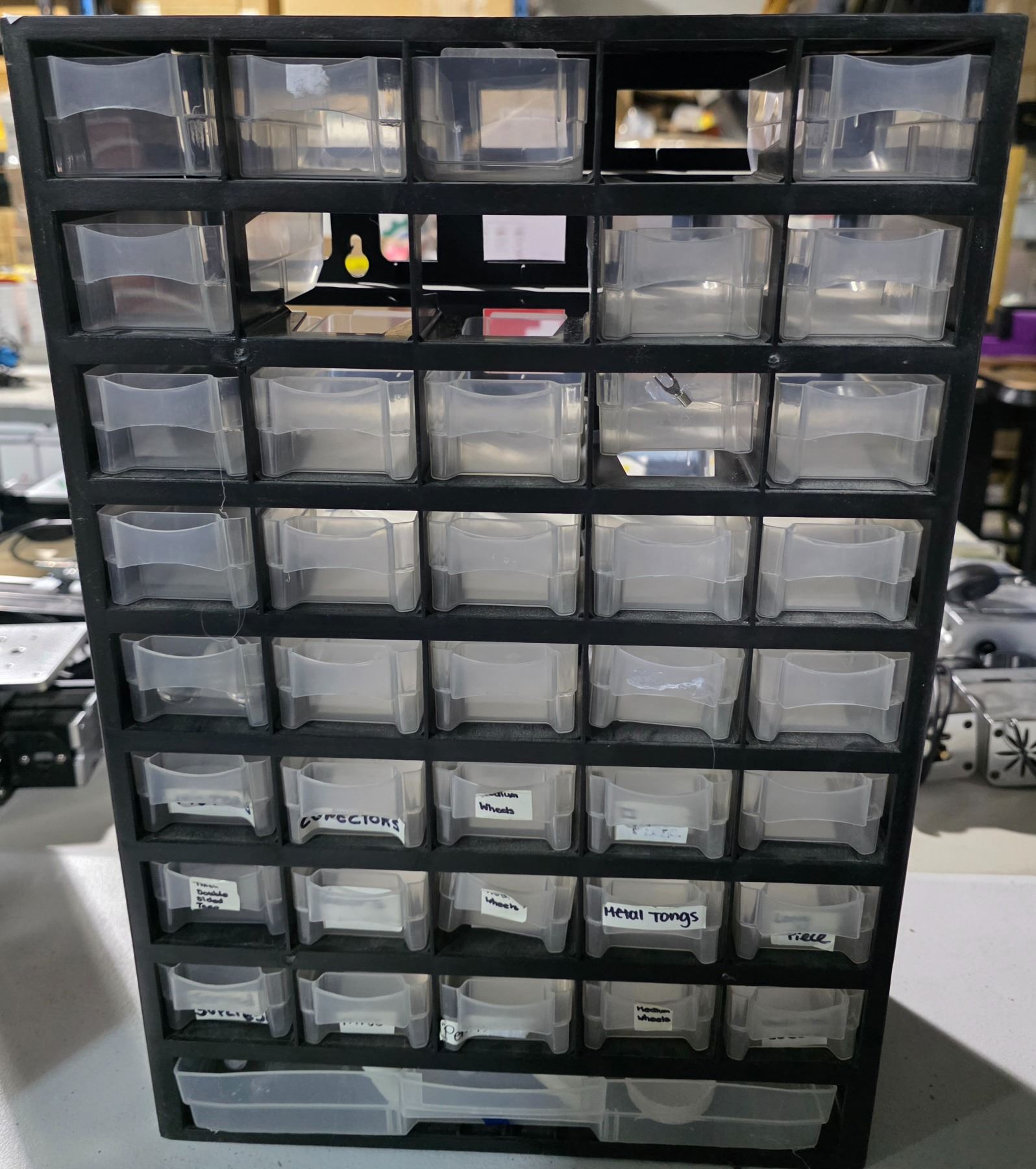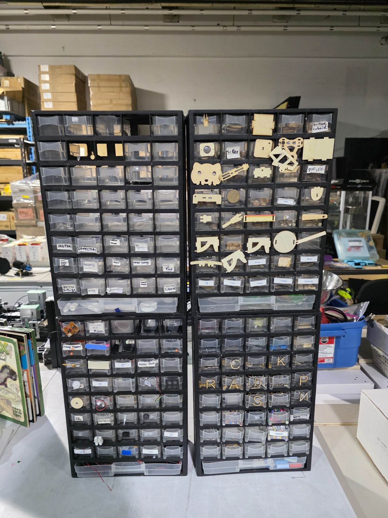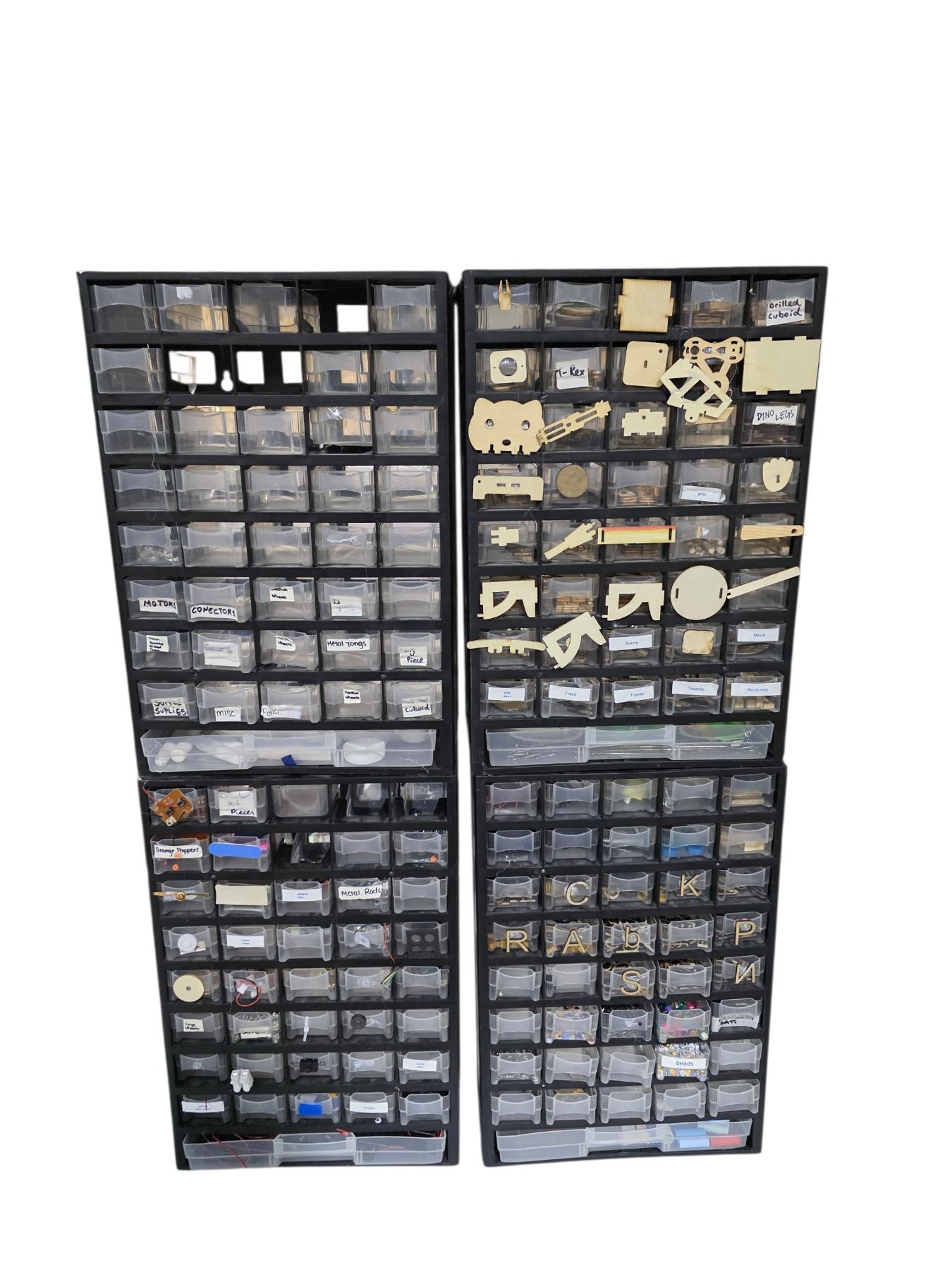 Group of 4 Multi-Drawer 18" H Storage Cabinets - includes Contents (Electric Components, Small Wooden pcs & More)