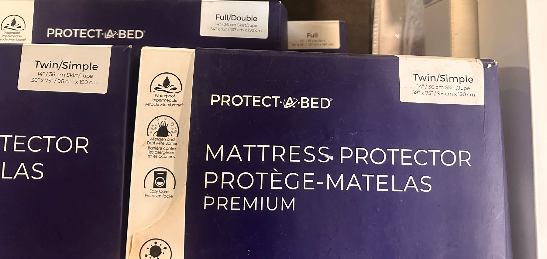 Group of 4 NEW Protect A Bed Mattress Protector Premium - includes x2 Twin/Simple & x2 Double/Full (Some Boxes are damaged)