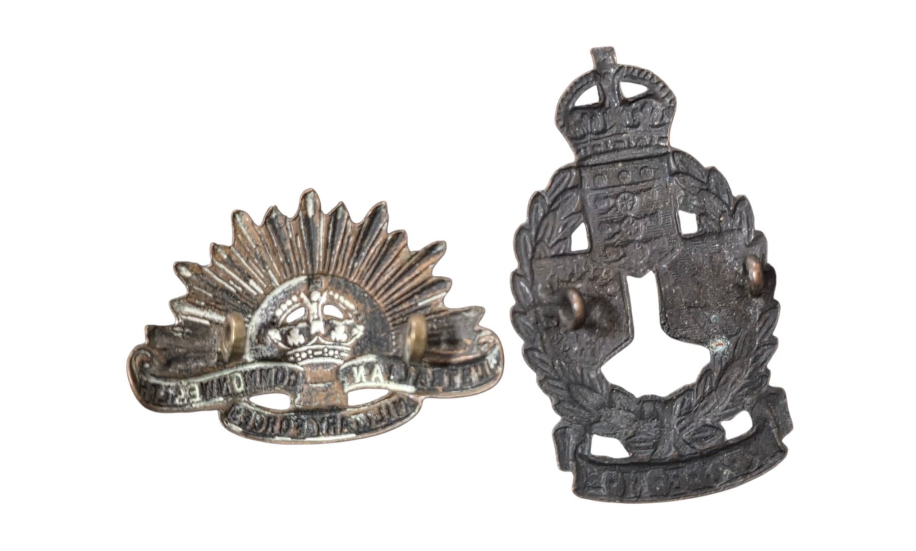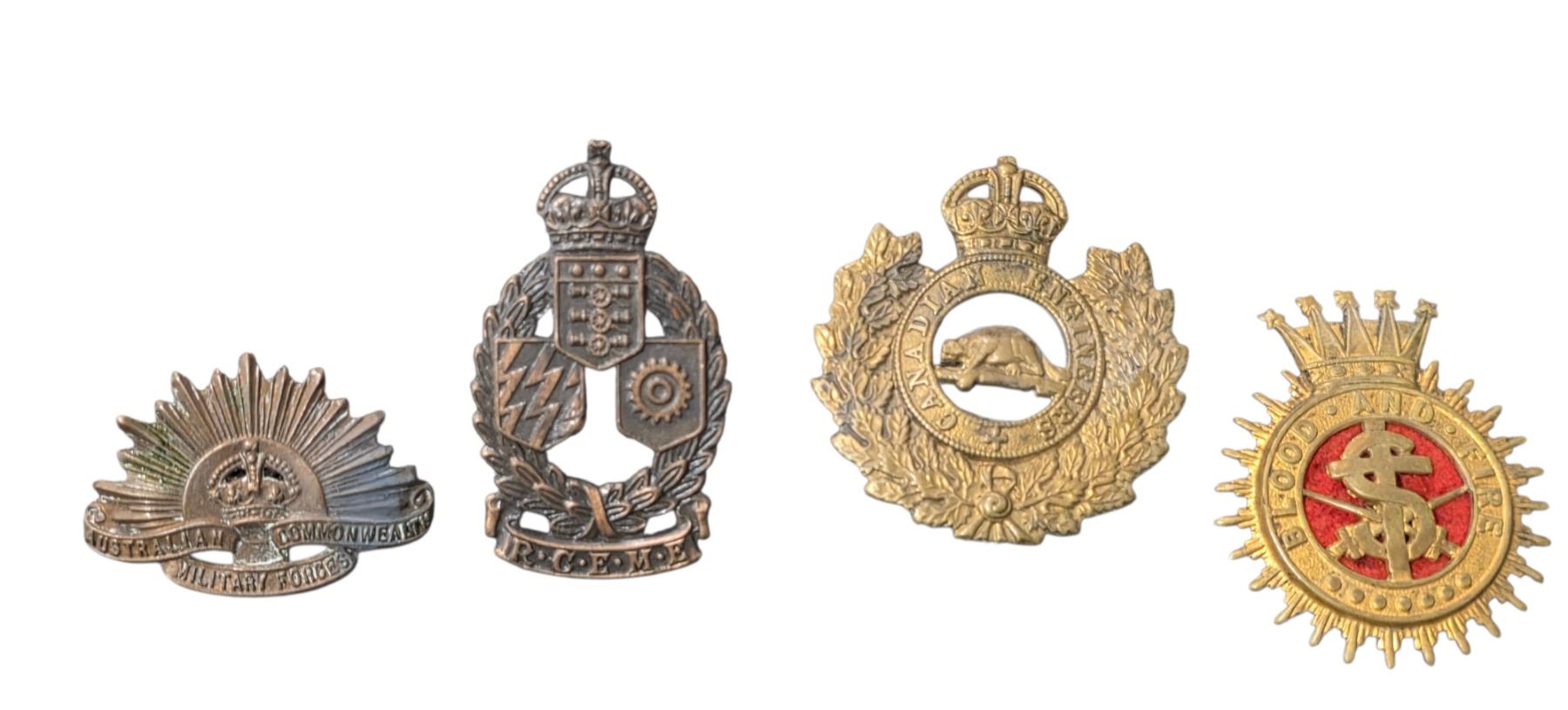 Group of 4 Vintage Commonwealth Military Cap Badges (Australia & Canada, Assorted Regiments)
