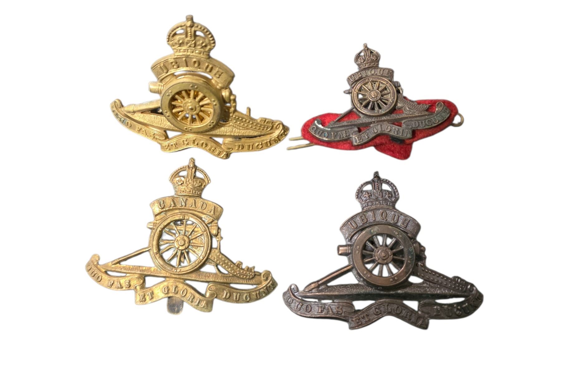 Group of 4 WW2 Royal Canadian (Army) Artillery Metal Cap Badges