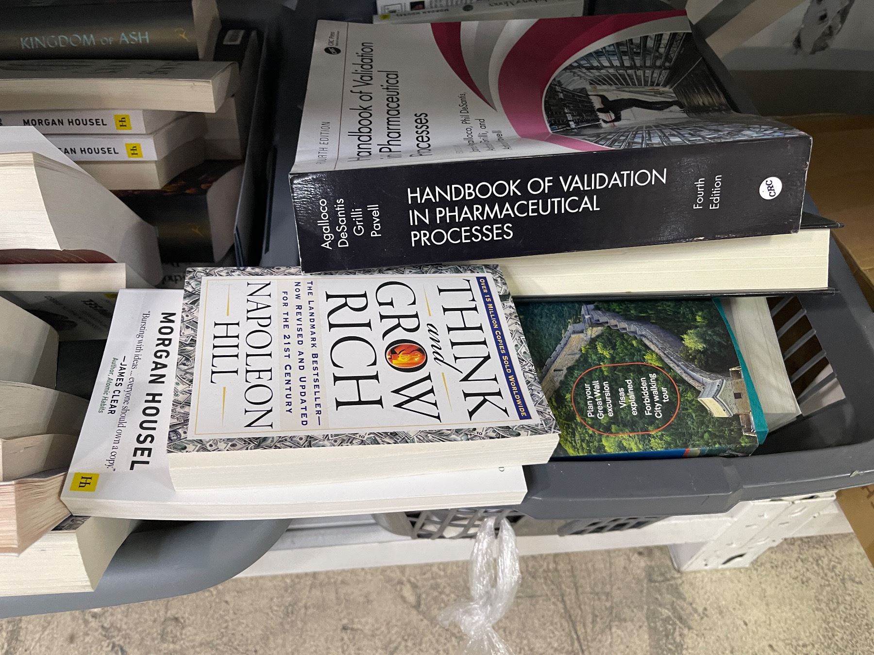 Group of 4 bins full of Books/ NEW Items, Office Supplies/ Tools & More (Bins are not included - Please Bring Bags)