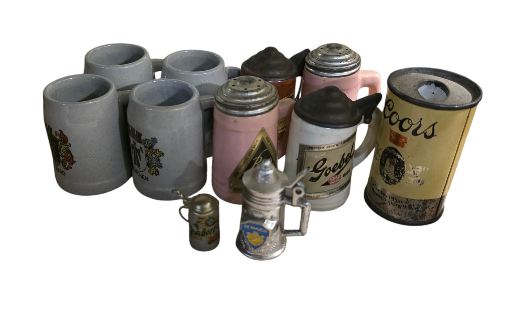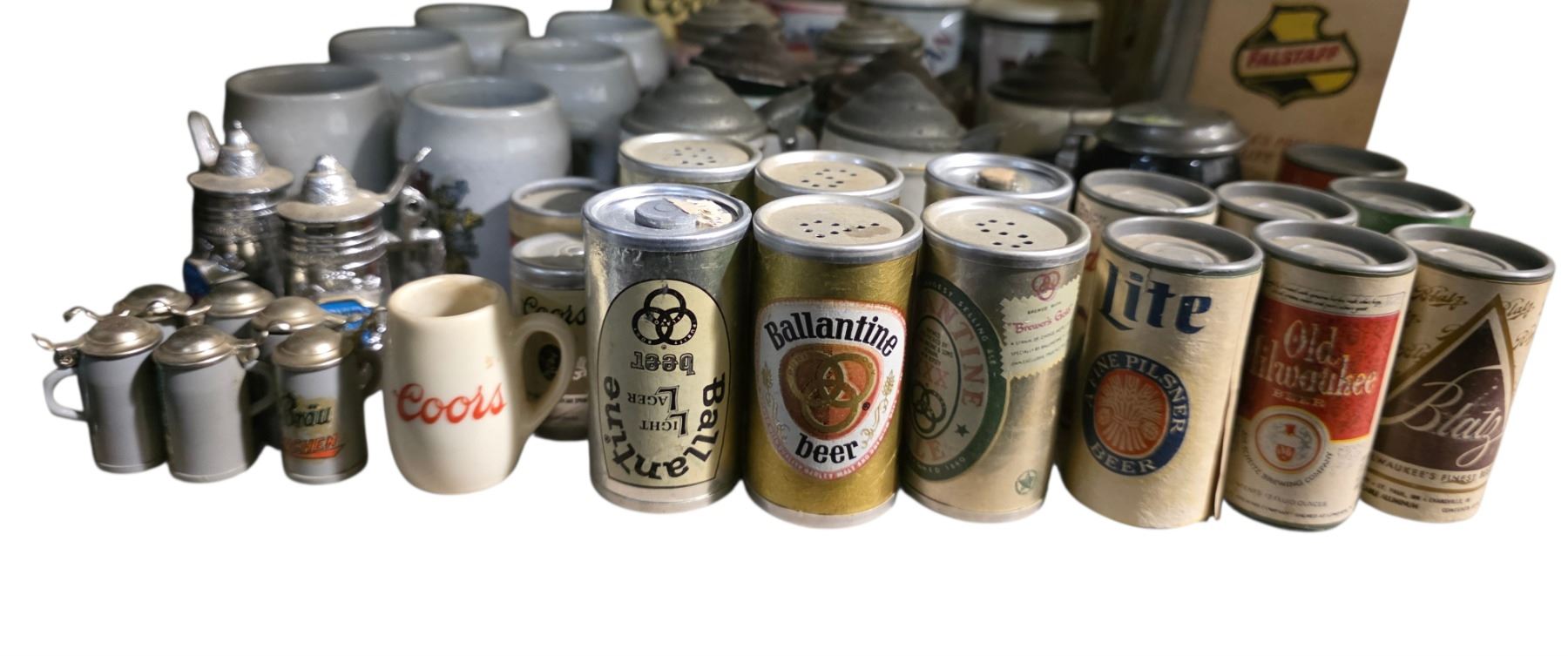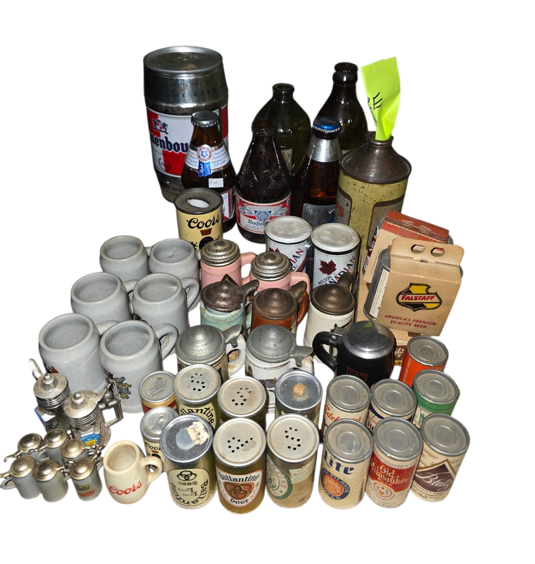 Group of 45 Beer Miniature Salt & Pepper Shakers and Assorted Beer Bottles