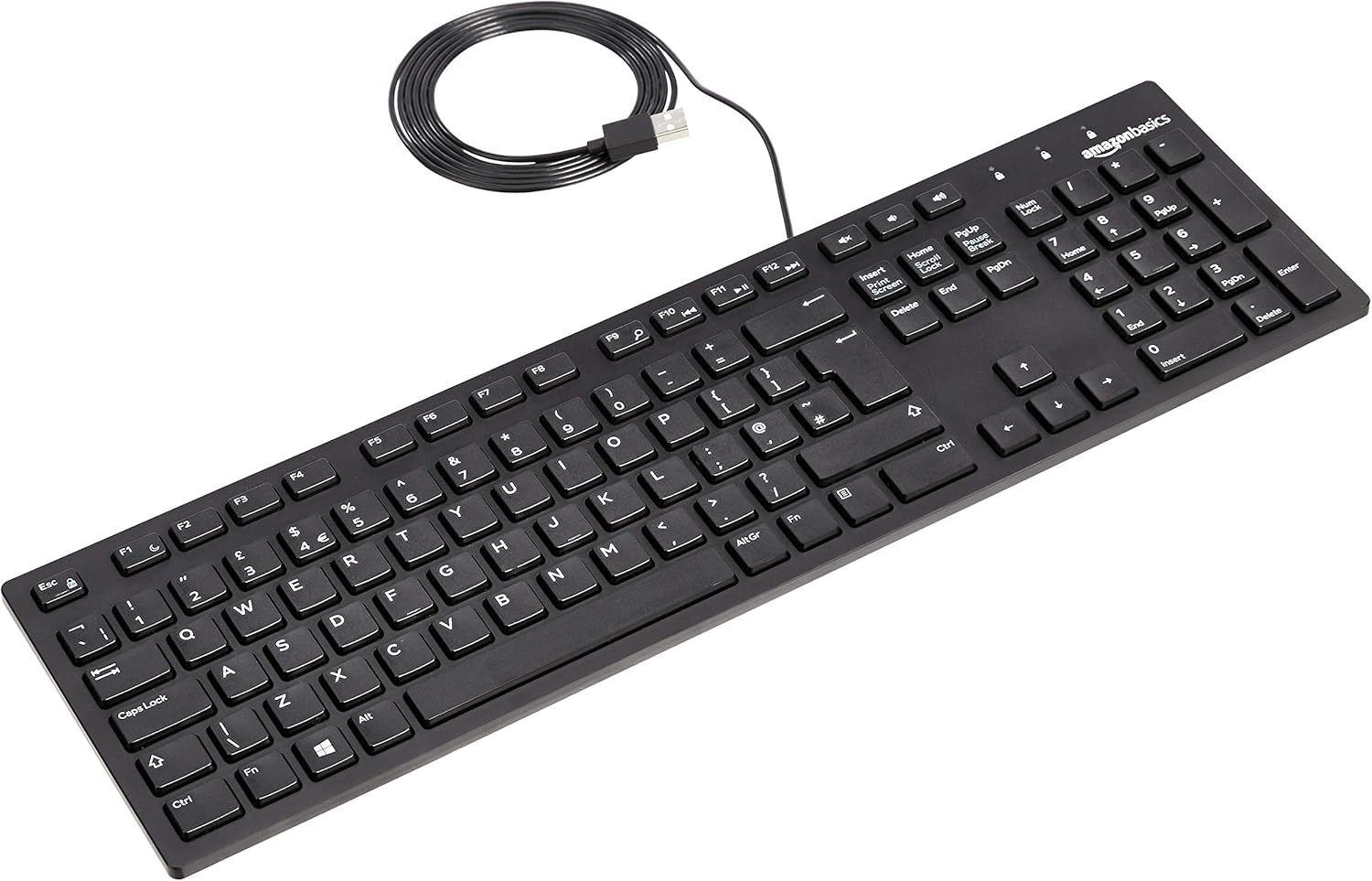 Group of 5 Amazon Basics Matte Black Wired Keyboard, UK QWERTY Layout B07VWBJLFX