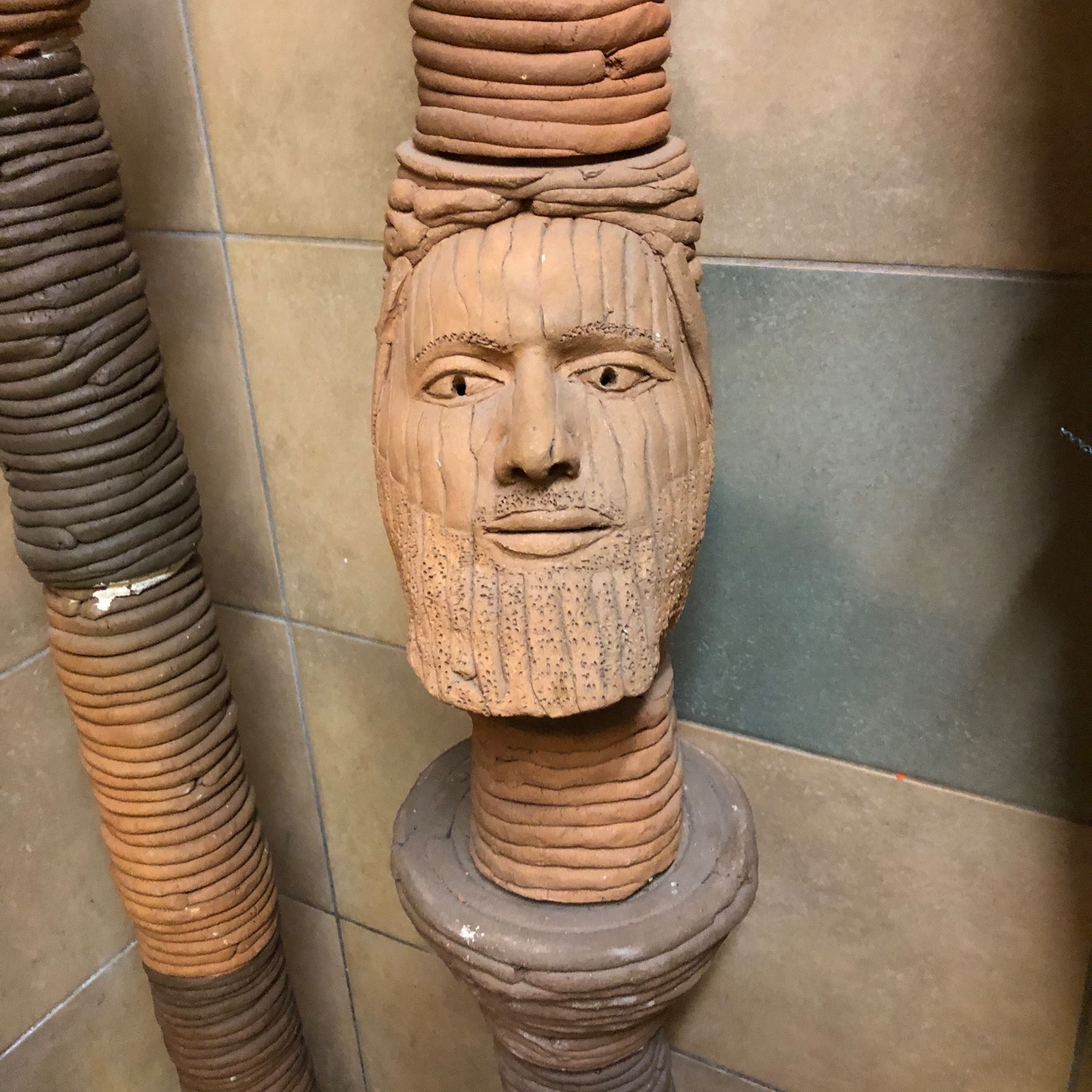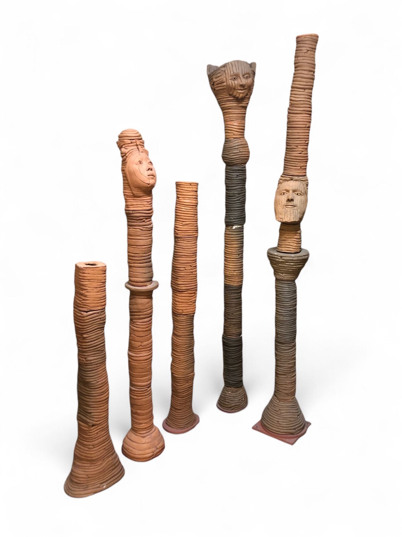 Group of 5 Art Pc's including - Coiled Form with 1x Bearded Face (Possibly a Fragment), Coiled Form with 1x Face at Top, Coiled Form (Possibly a Fragment), Coiled Form with 1x Face, Coiled Form (Possibly a Fragment) All made w/Ceramic (Michener, Sally)