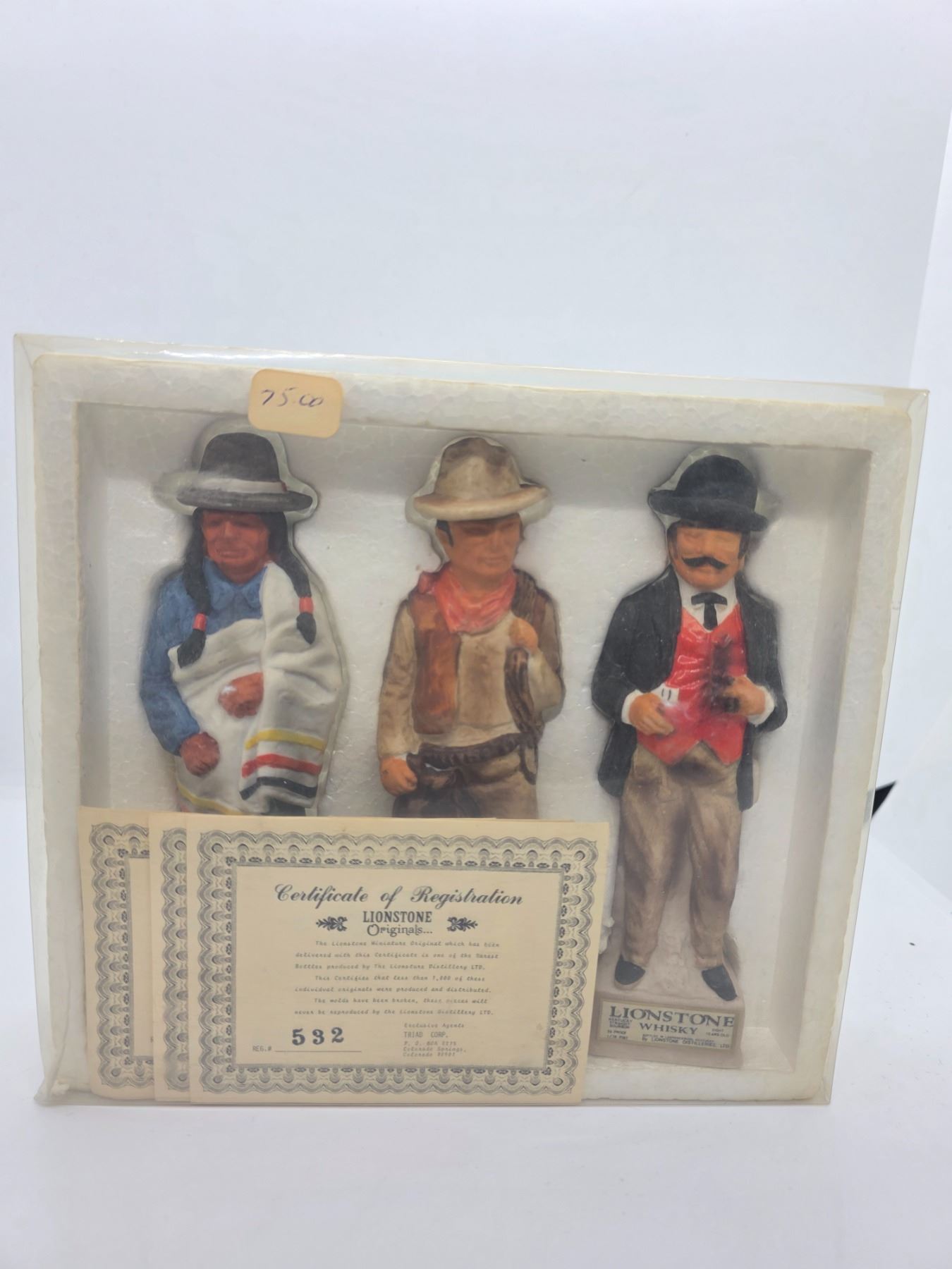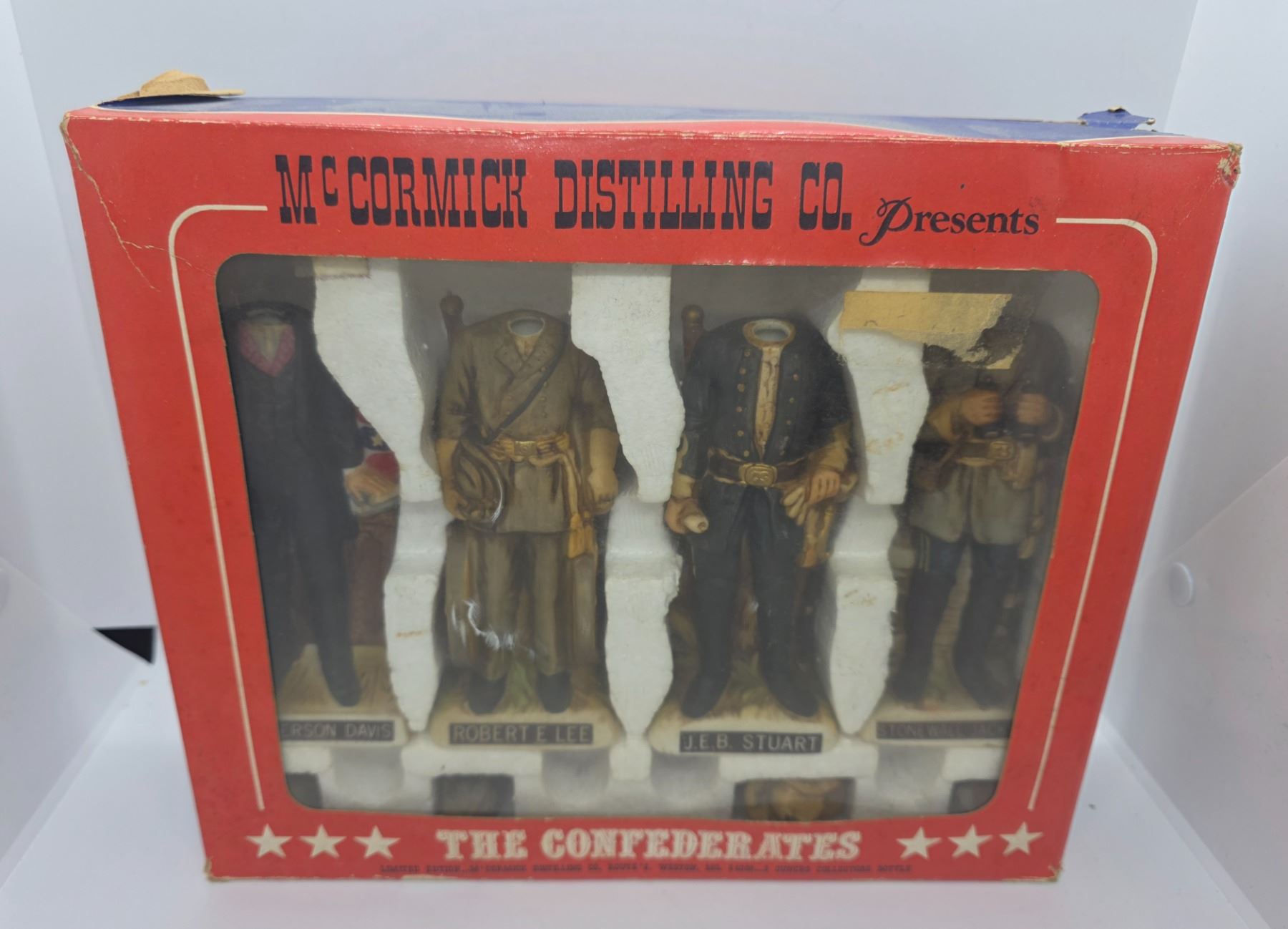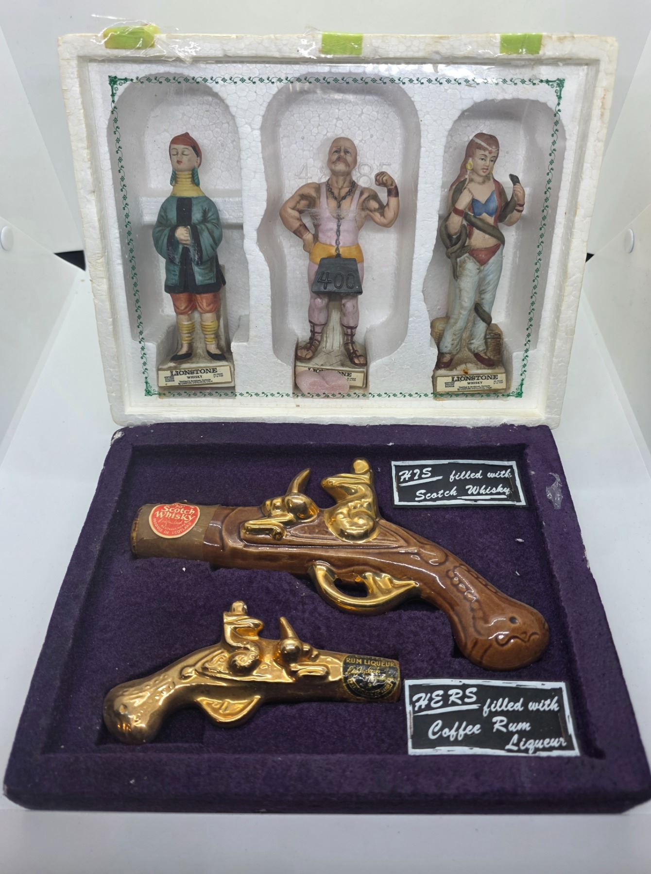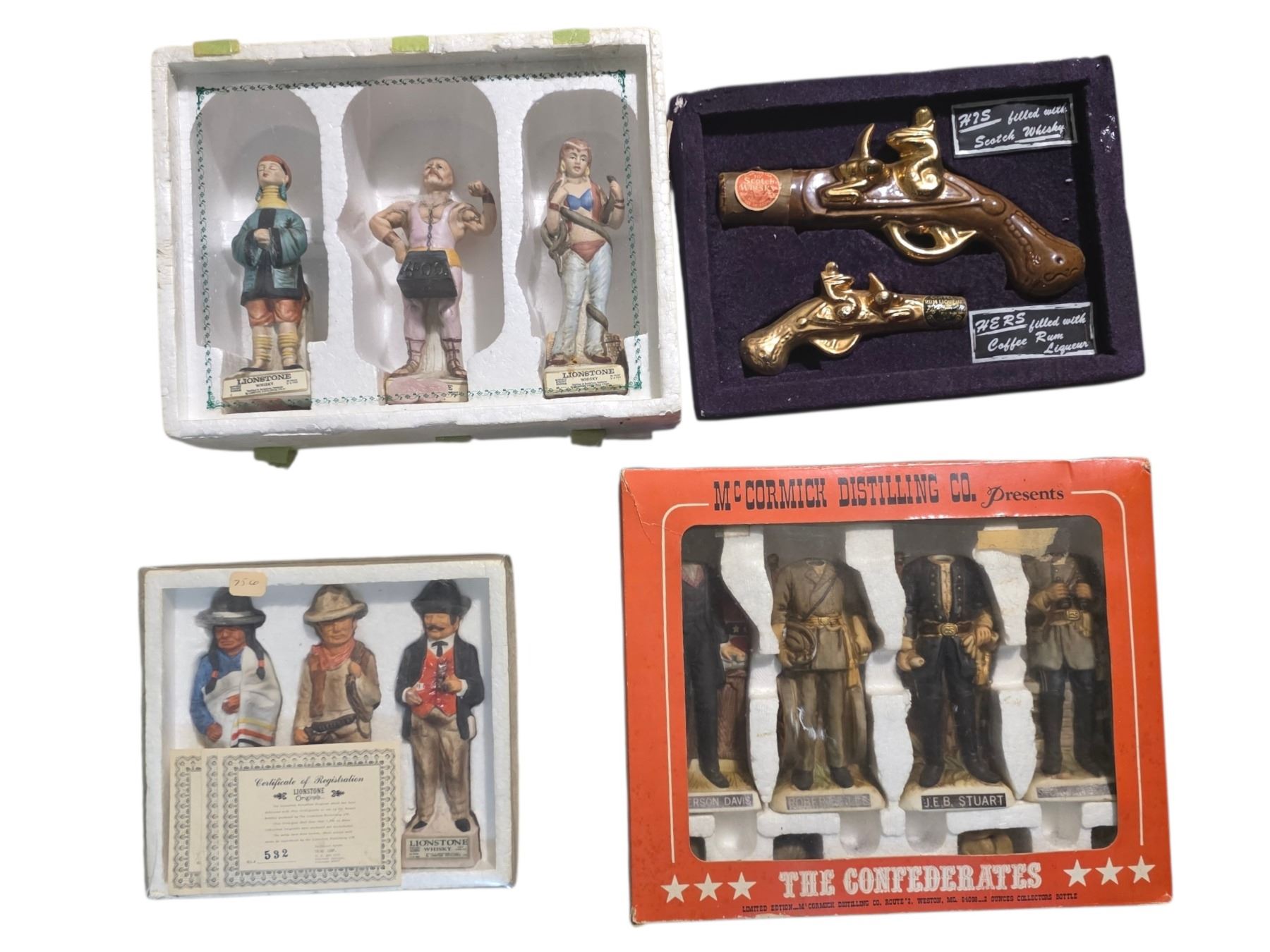 Group of 5 Hoffman, McCormick and Lionheart Mini Porcelain Liquor Decanters in Packaging (empty)