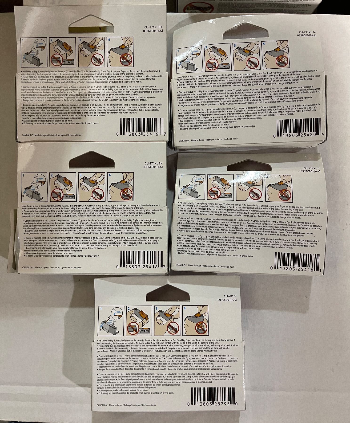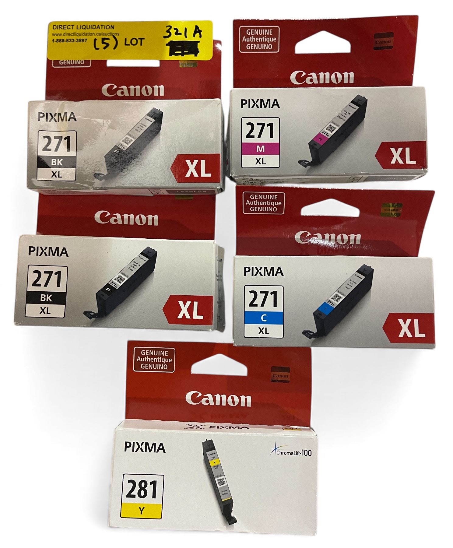 Group of 5 - New Canon PIXMA Ink Cartridges - RV: 150 CAD (271XL + 281Y, 5 Cartridges Total)