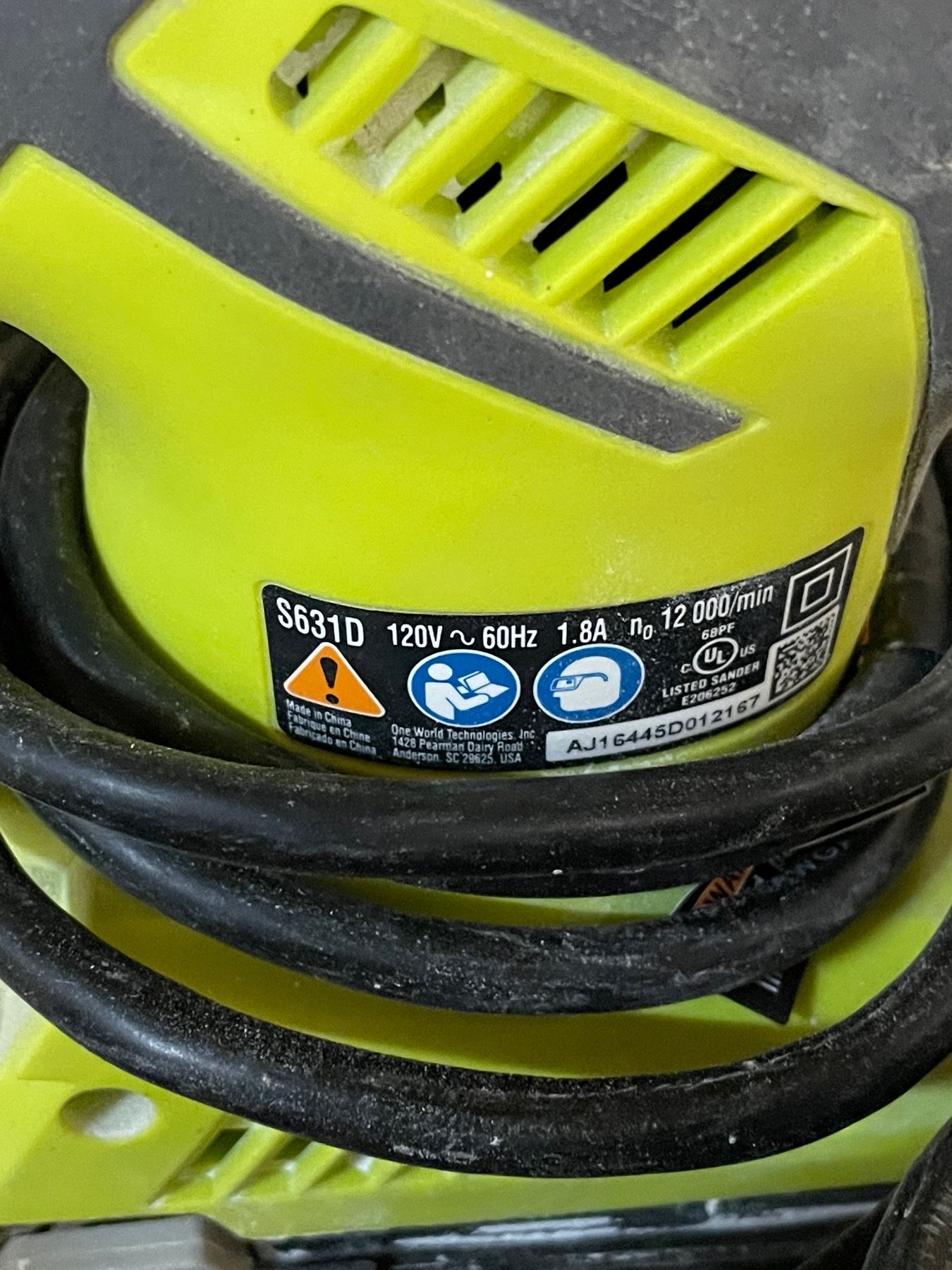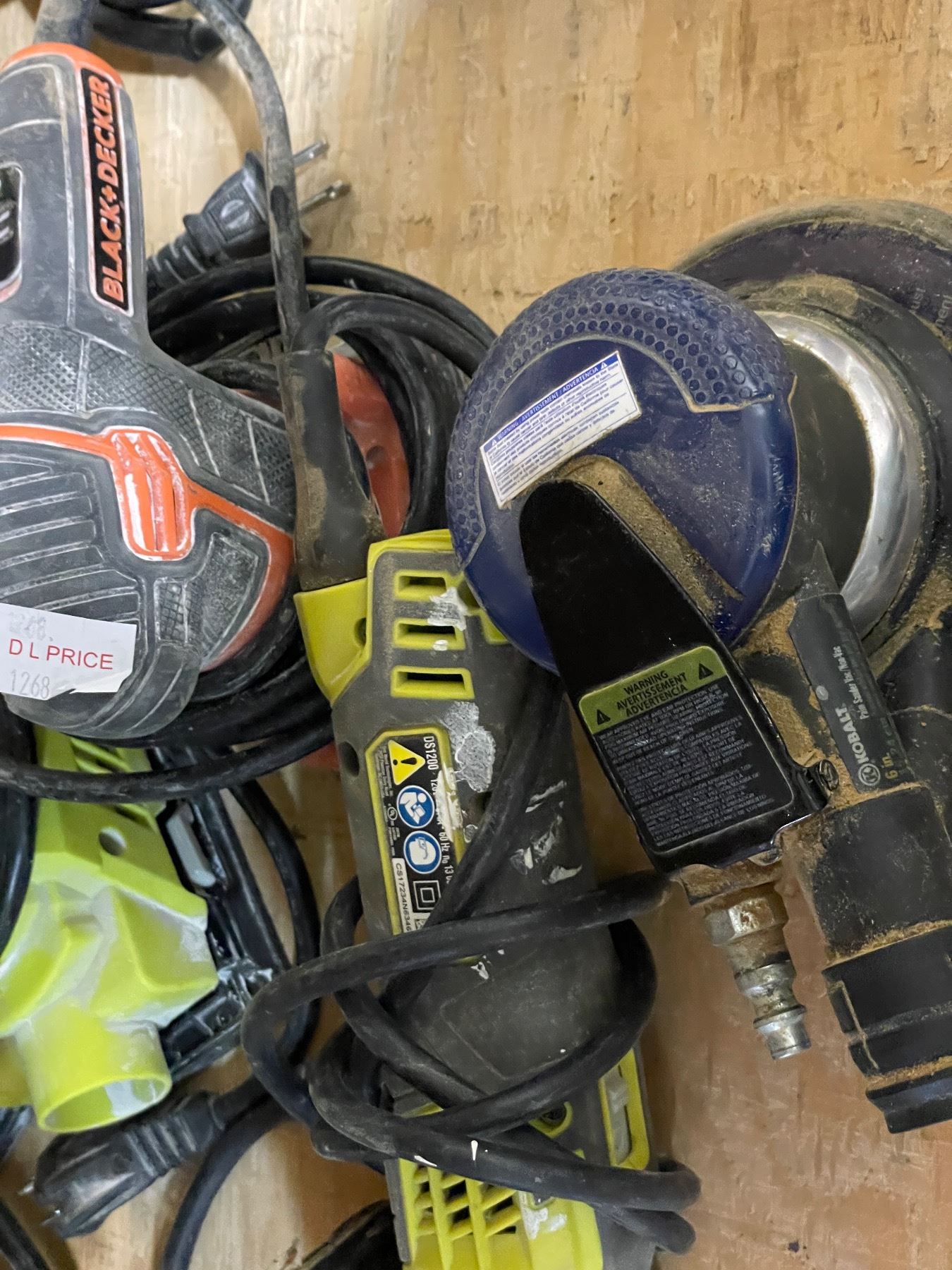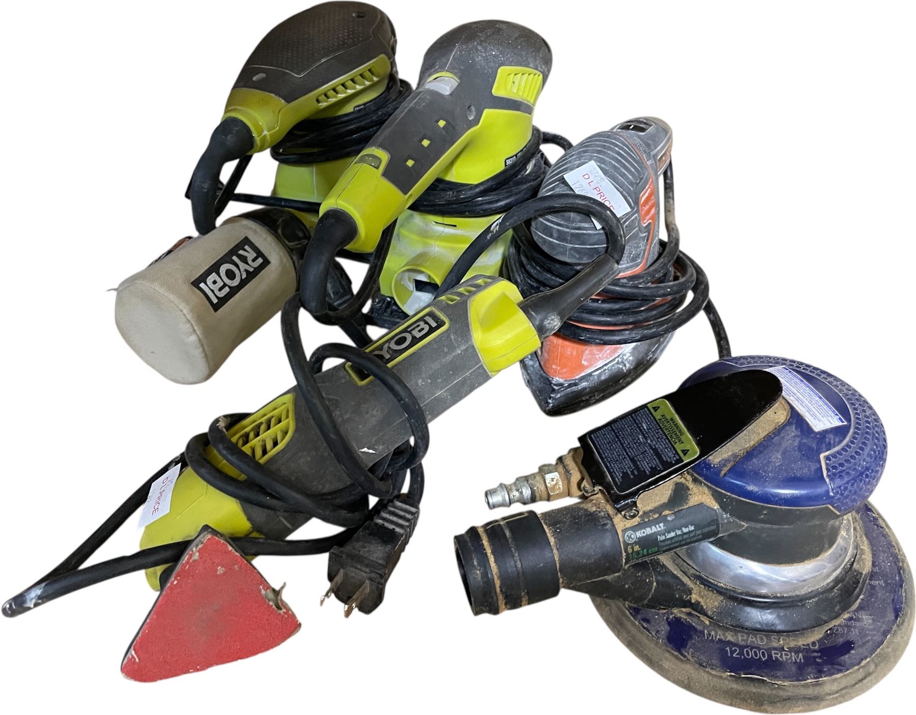 Group of 5 assorted Sanders - includes Black +Decker Angler Sander, x2 Micro filtration Ryobi & More